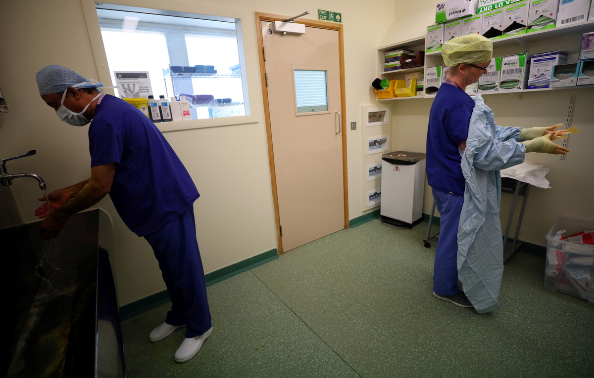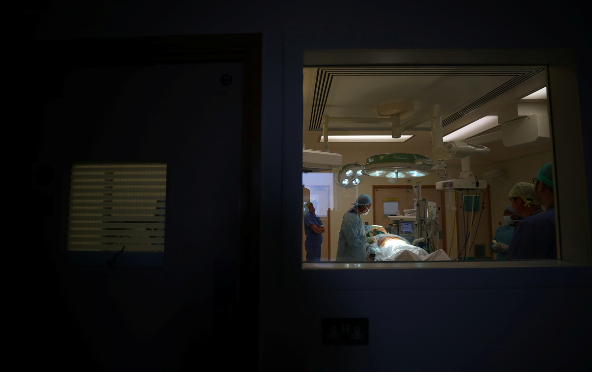 A surgical team prepare a patient ahead of performing an operation at Milton Keynes University Hospital in Milton Keynes, central England, Britain, May 23, 2018. REUTERS/Hannah McKay
