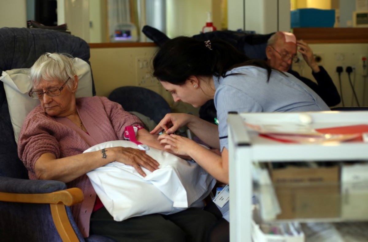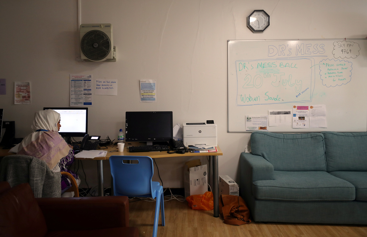 Sarah Plant comforts her grandmother, Barbara Lant, who awaits treatment in the Accident and Emergency department of Milton Keynes University Hospital in Milton Keynes, central England, Britain, June 6, 2018. "If we'd had to pay for the care, we wouldn't have been able to afford it. I don't really want to think about what it would have been like," said Plant. REUTERS/Hannah McKay Wayne Vassell, a junior doctor specializing in orthopedics, poses for a photograph in the Junior Doctor's staffroom at Milton Keynes University Hospital in Milton Keynes, central England, Britain, June 6, 2018. "For me the NHS means a lot because it's a unique model that provides care to people irrespective of background and income," Vassell said. "The best reward is when you've been treating a patient and you have a happy family and they say thank you." REUTERS/Hannah McKay Inpatient Donald Ritson and his wife Linda Ritson arrive to Ward 24 in Milton Keynes University Hospital in Milton Keynes, central England, Britain, May 22, 2018. "I've had so many things go wrong with my body in the last four-and-a-half years that it's just incredible that one organisation can cure so many things and treat me so kindly, efficiently, and for free. It's just astonishing,Ó said Ritson. He remembers what it was like before the state-funded NHS, when healthcare was beyond the reach of many people because they could not afford to pay doctors' fees. "I can remember my brother being ill and my parents being unable to afford to go to a doctor, so they tried to treat it themselves," he recalled. "We could never go back to that sort of system. Cradle to grave, it's not a bad idea." REUTERS/Hannah McKay Inpatient Annette Evans is cared for by a nurse in Ward 8 of Milton Keynes University Hospital in Milton Keynes, central England, Britain, June 6, 2018. REUTERS/Hannah McKay Hospital staff deliver patients their lunchtime meals in Ward 8 of Milton Keynes University Hospital in Milton Keynes, central England, Britain, June 6, 2018. REUTERS/Hannah McKay Hospital staff work in the Accident and Emergency department at Milton Keynes University Hospital in Milton Keynes, central England, Britain, May 23, 2018. REUTERS/Hannah McKay A hospital worker cleans the floor of Ward 8 in Milton Keynes University Hospital in Milton Keynes, central England, Britain, June 6, 2018. REUTERS/Hannah McKay A surgical team prepare a patient ahead of performing an operation at Milton Keynes University Hospital in Milton Keynes, central England, Britain, May 23, 2018. REUTERS/Hannah McKay Hospital staff prepare to receive a body in the mortuary at Milton Keynes University Hospital in Milton Keynes, central England, Britain, June 8, 2018. REUTERS/Hannah McKayA hospital porter pushes a patient through the Accident and Emergency department at Milton Keynes University Hospital in Milton Keynes, central England, Britain, May 23, 2018. REUTERS/Hannah McKayMembers of the surgical team prepare to enter an operating theatre ahead of an operation at Milton Keynes University Hospital in Milton Keynes, central England, Britain, May 23, 2018. REUTERS/Hannah McKay A skeleton is seen in the physiotherapy department at Milton Keynes University Hospital in Milton Keynes, central England, Britain, May 22, 2018. REUTERS/Hannah McKay Eric Blackman (L) and Ira Hutchinson (C) participate in a physiotherapy class for amputees in the Physiotherapy department at Milton Keynes University Hospital in Milton Keynes, central England, Britain, June 8, 2018. REUTERS/Hannah McKay Inpatient John Cheese sits on a bed in Ward 24 in Milton Keynes University Hospital in Milton Keynes, central England, Britain, May 22, 2018. REUTERS/Hannah McKay A junior doctor works in the Junior Doctor staffroom at Milton Keynes University Hospital in Milton Keynes, central England, Britain, June 6, 2018. REUTERS/Hannah McKay Pigeon holes are seen at the Junior Doctor's staffroom at Milton Keynes University Hospital in Milton Keynes, central England, Britain, June 6, 2018. REUTERS/Hannah McKay An inpatient awaits visitors in her room in Ward 8 at Milton Keynes University Hospital in Milton Keynes, central England, Britain, May 23, 2018. REUTERS/Hannah McKay Inpatient Jean Barnett has her hair washed in the hospital hairdressers at Milton Keynes University Hospital in Milton Keynes, central England, Britain, June 6, 2018. REUTERS/Hannah McKay People wait in the waiting room at Milton Keynes University Hospital in Milton Keynes, central England, Britain, June 8, 2018. REUTERS/Hannah McKay A nurse takes blood from a patient in the Macmillan Unit at Milton Keynes University Hospital in Milton Keynes, central England, Britain, May 23, 2018. REUTERS/Hannah McKay A woman looks out of a corridor window in Milton Keynes University Hospital in Milton Keynes, central England, Britain, May 23, 2018. REUTERS/Hannah McKay