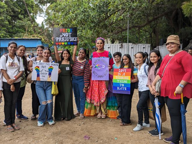 Students from different colleges gathered at the venue with placards and banners that they had prepared. From Mulund’s KET’s Vinayak Ganesh Vaze College of Arts, Science & Commerce, a students group called Vaze Queer Collective had come to represent their group. A committee run by the students of the college educates students and faculty about queer rights, their existence in the society through open mics, film screening, explanatory seminars, exhibition and workshops.