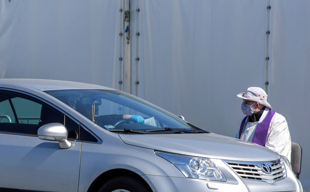 "From the safety of their car, they can take care of their soul while protecting their bodies from germs in this special time," he told Reuters.