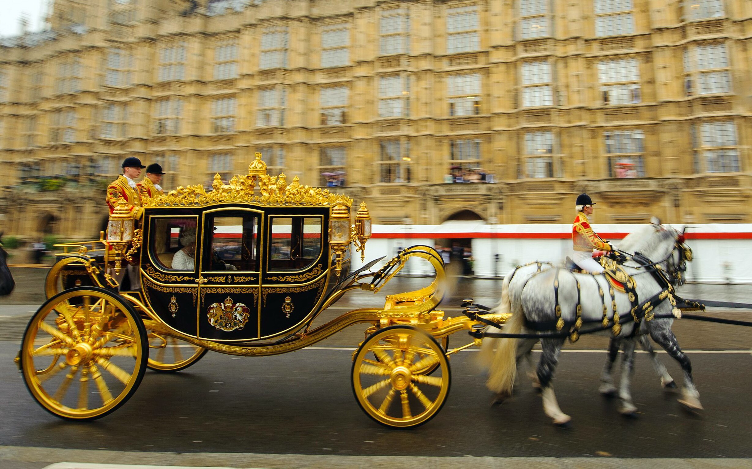 The carriage — which has an air-conditioned interior — consists of number of expensive and symbolic components, including New Zealand-made doorhandles with diamonds and sapphires, fragments of Sir Isaac Newton's apple tree and wood from the door on 10 Downing Street.