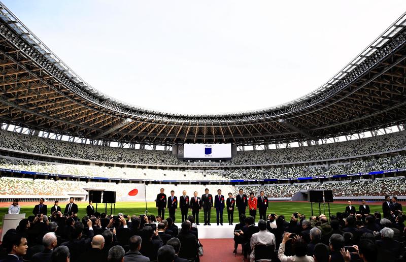 Prime Minister Shinzo Abe and Tokyo Gov. Yuriko Koike celebrated on Sunday the completion of the new National Stadium in Shinjuku Ward, Tokyo, the main venue for the 2020 Tokyo Olympics and Paralympics.