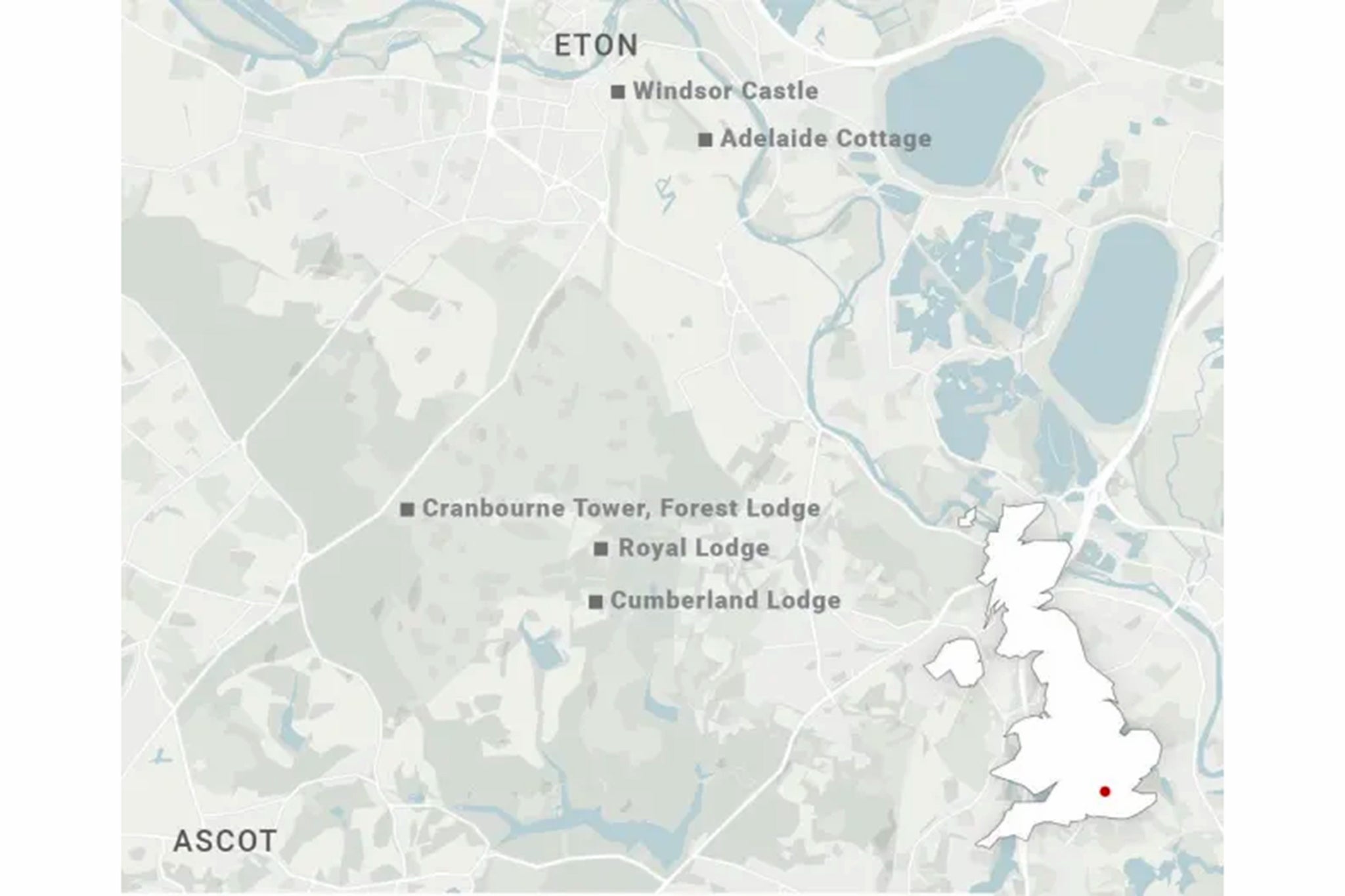 18:01 , Nicole Wootton-CaneMap shows distance between Royal Lodge and Adelaide Cottage