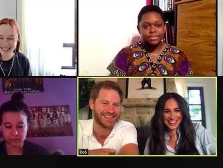 There are 14 participants on the Zoom call, including Harry and Meghan, who are pictured together at their home in Santa Barbara, California.