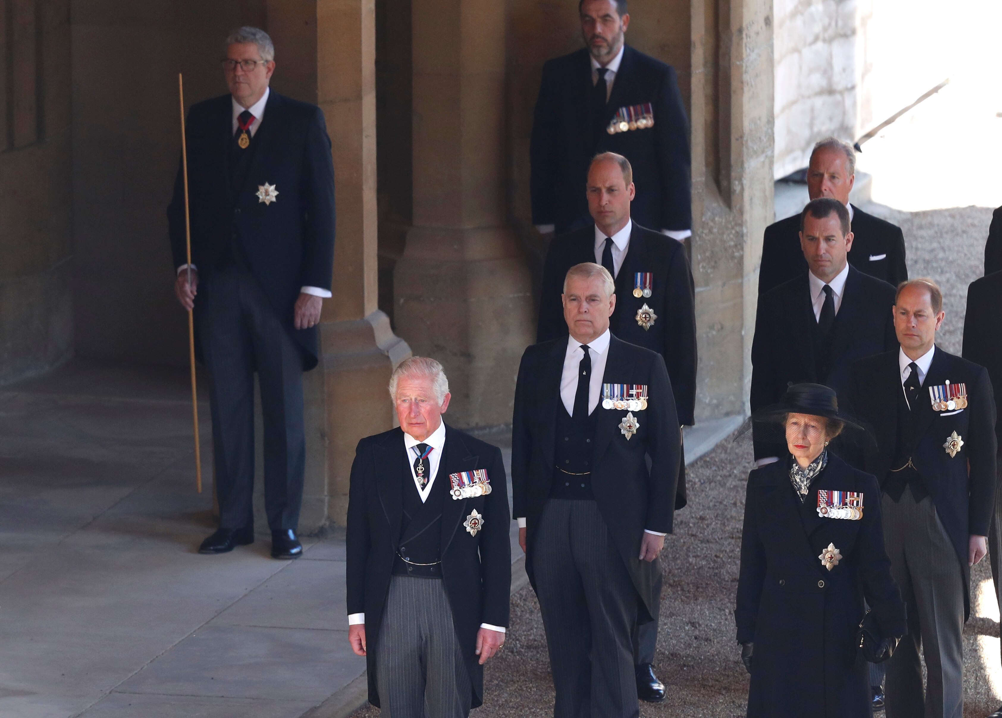 All four of Prince Philip and Queen Elizabeth II's children walked behind their father's coffin as it was driven to the chapel.