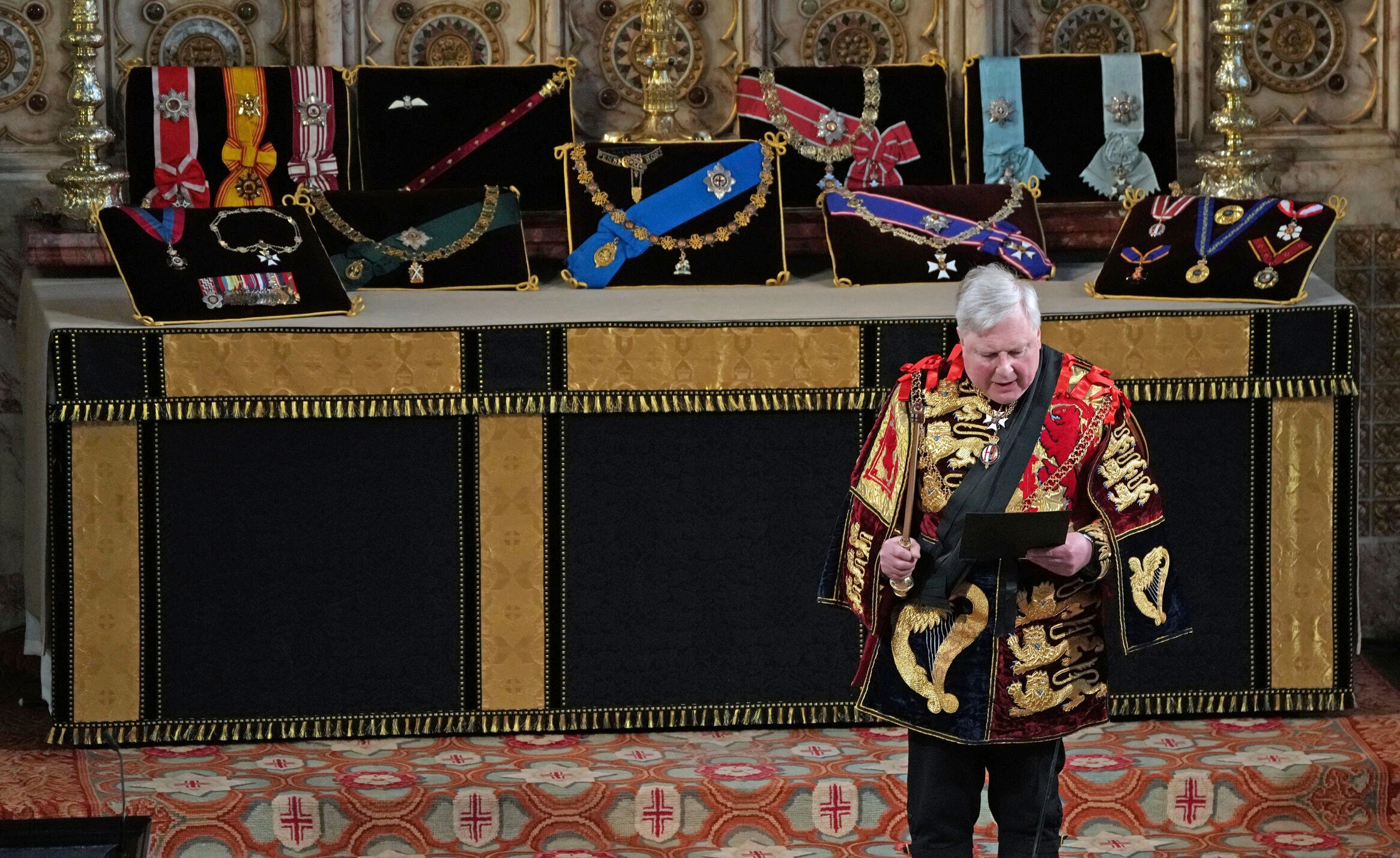 The Garter Principal King of Arms proclaimed Prince Philip's titles as the coffin was lowered into the Royal Vault.