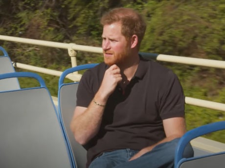 The royal was taken on an open-top bus tour of Los Angeles, during which Corden quizzed him about his thoughts on the Netflix drama, including who should portray him as an adult in future episodes.