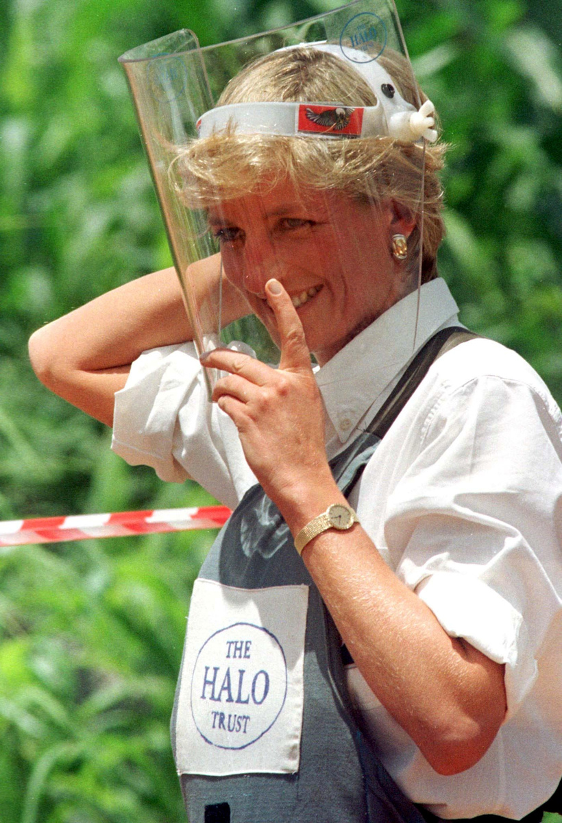 The pictures of Diana wearing protective gear as she walked among red skull-and-crossbone signs in Huambo in January 1997 won publicity for the HALO Trust, which was clearing mines left during Angola's civil war.