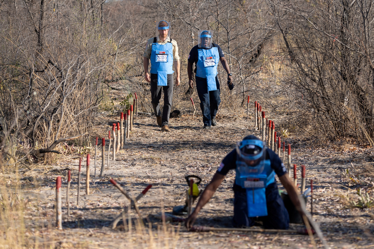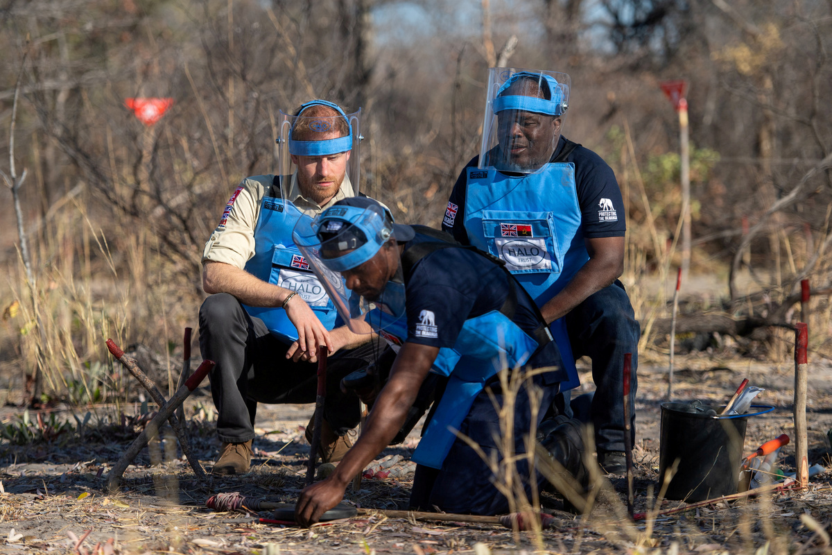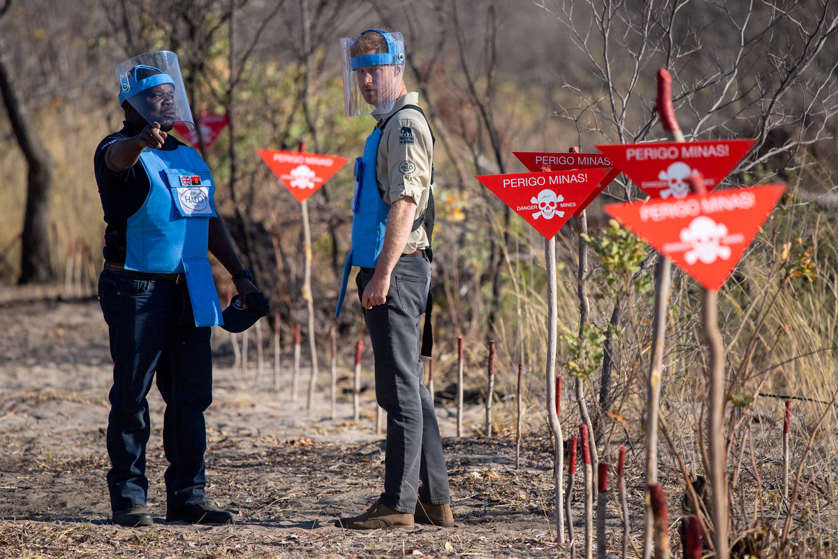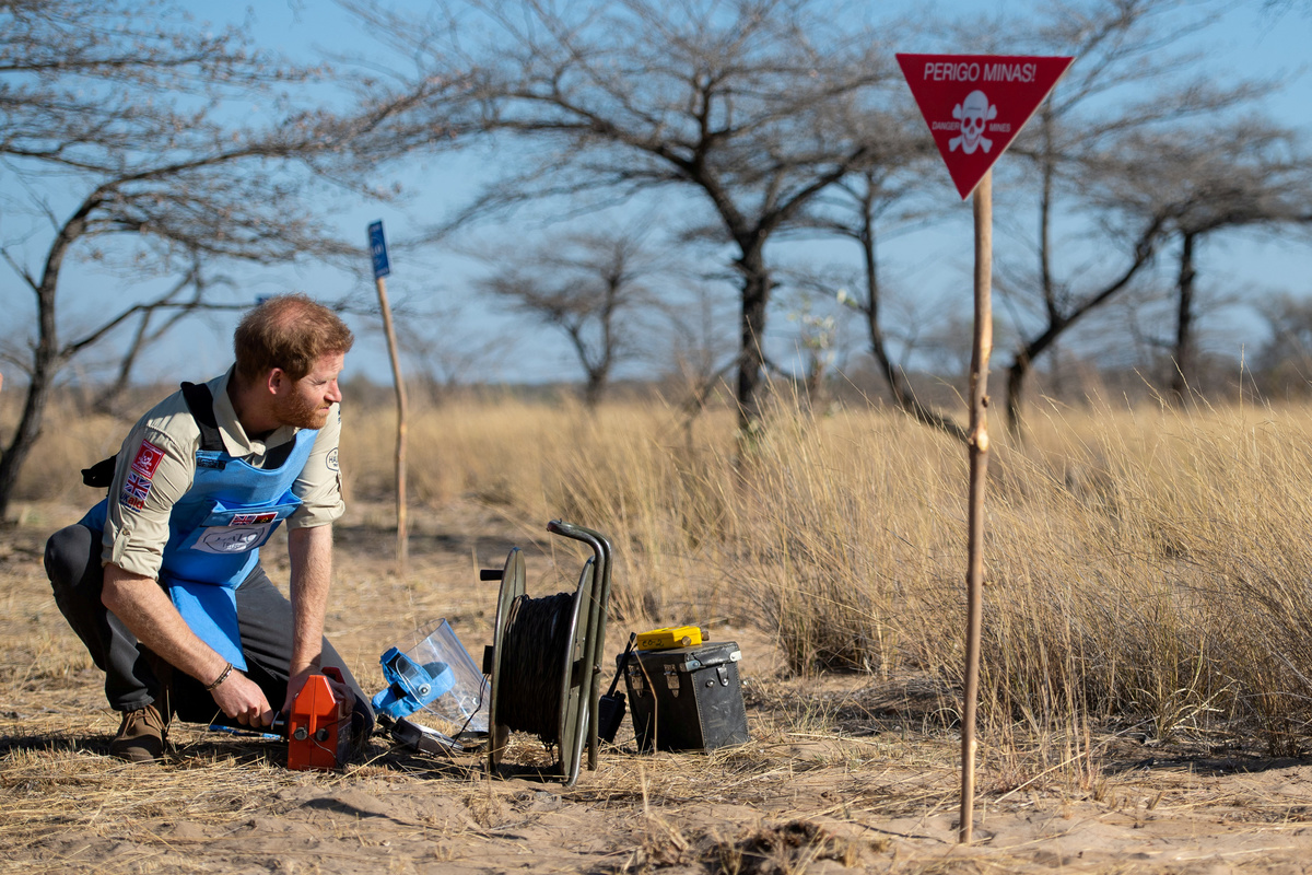 Queen Elizabeth's grandson and sixth in line to the British throne visited a de-mining field outside Dirico, a town in Angola's Cuando Cubango province, where, wearing a safety vest, he remotely detonated a mine in a controlled explosion. He also met community members.
