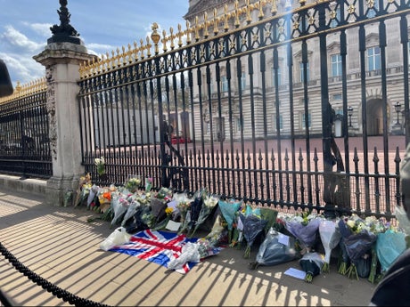 Visitors laid flowers and condolence messages at the gates, and many stood still outside in silence to pay their respects to “a great man”. Some called friends and family on FaceTime to allow them to pay their respects virtually.