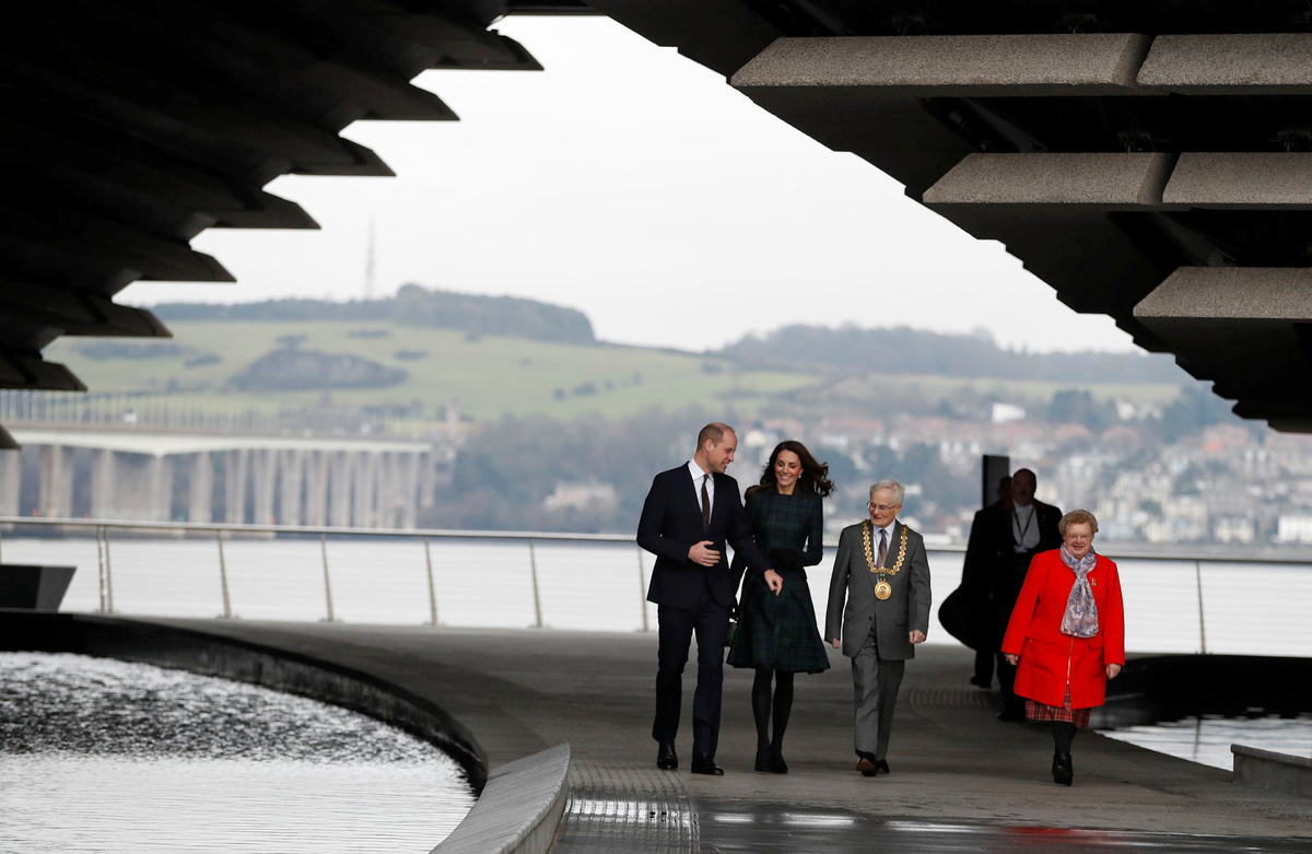 Earlier the Duke and Duchess of Cambridge, who met while studying at Scotland's University of St. Andrews, officially opened the Victoria & Albert Dundee, an eye-catching design museum which looks like the bow of a ship, on the mouth of the River Tay.