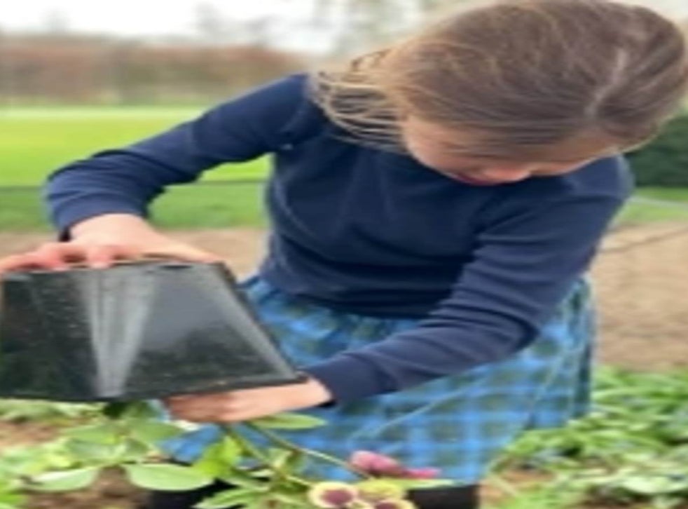In one shot, Princess Charlotte can be seen taking a flower out of a pot so that it is ready to plant into the ground.