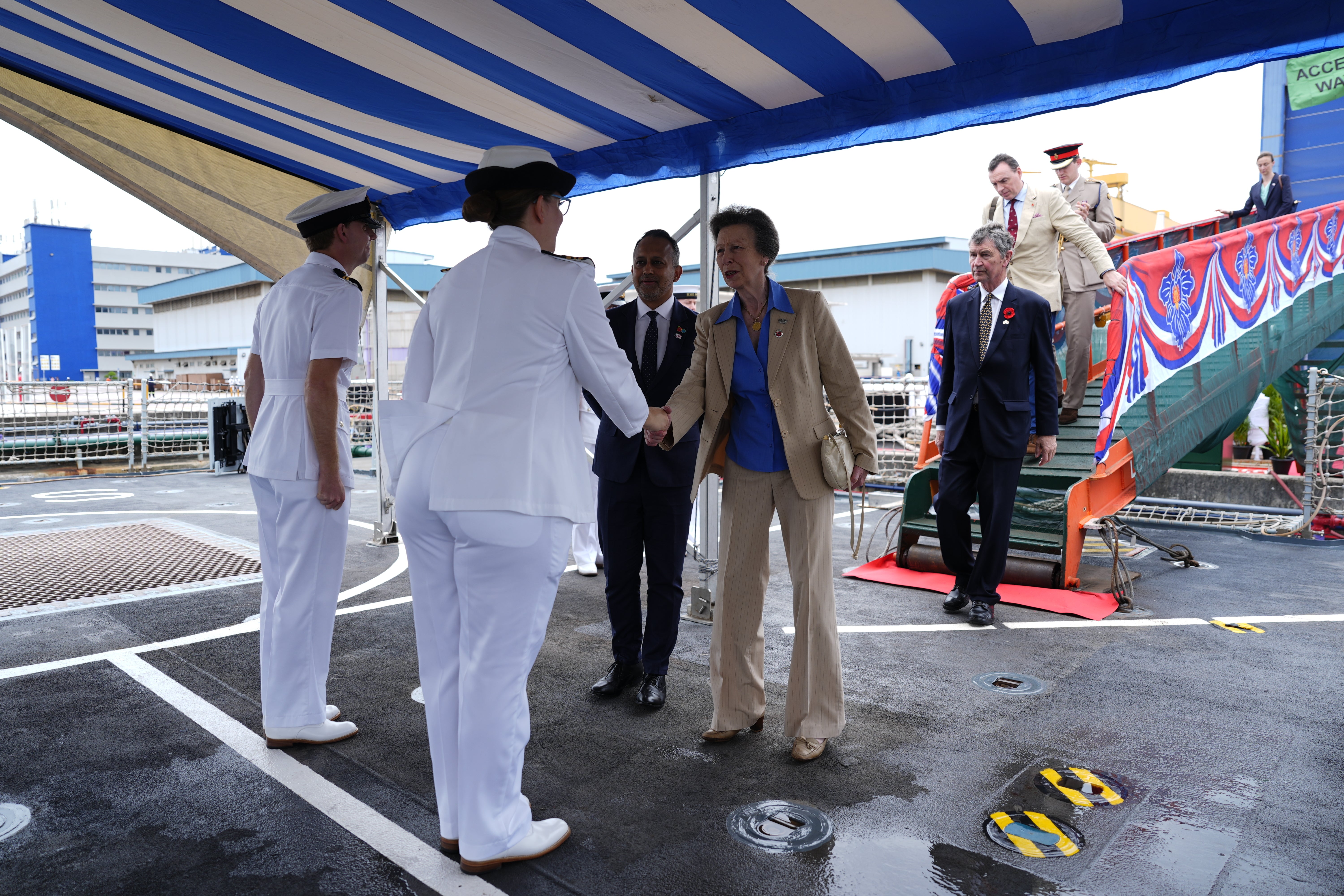 After the short service, Anne visited HMS Spey which has been deployed to the Indo-Pacific since 2021 and is the fifth of the second-generation river class offshore patrol vessels built for the Royal Navy.