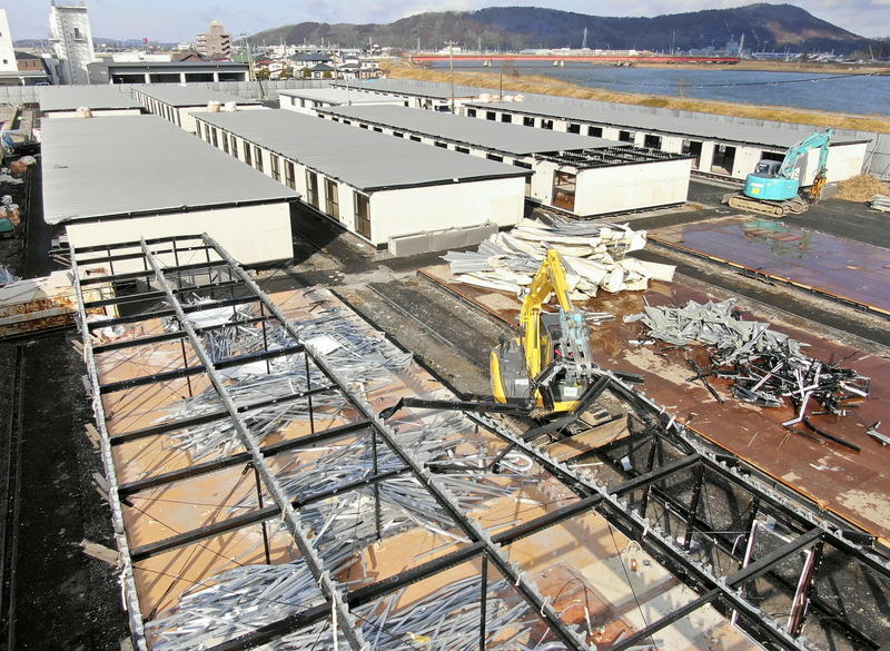 ISHINOMAKI, Miyagi -- The largest temporary housing complex built for victims of the Great East Japan Earthquake is being demolished with heavy machinery in Ishinomaki, Miyagi Prefecture.