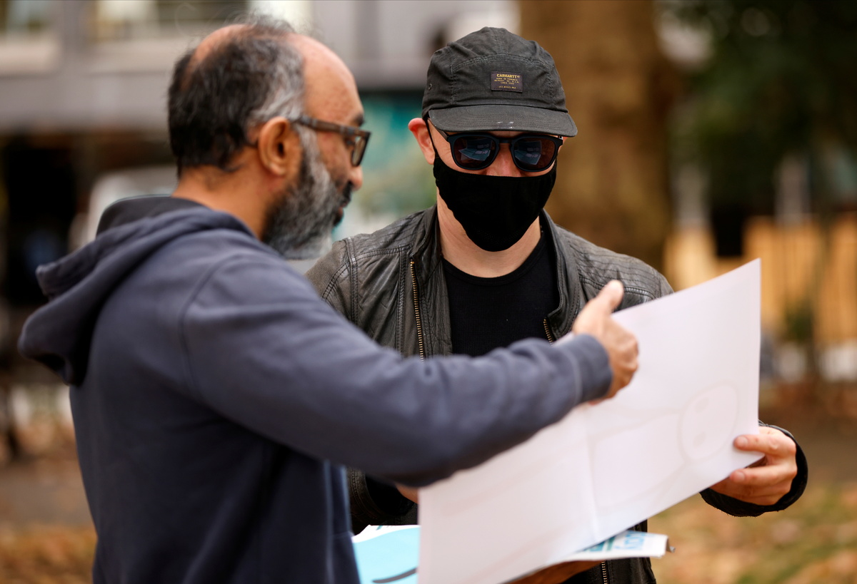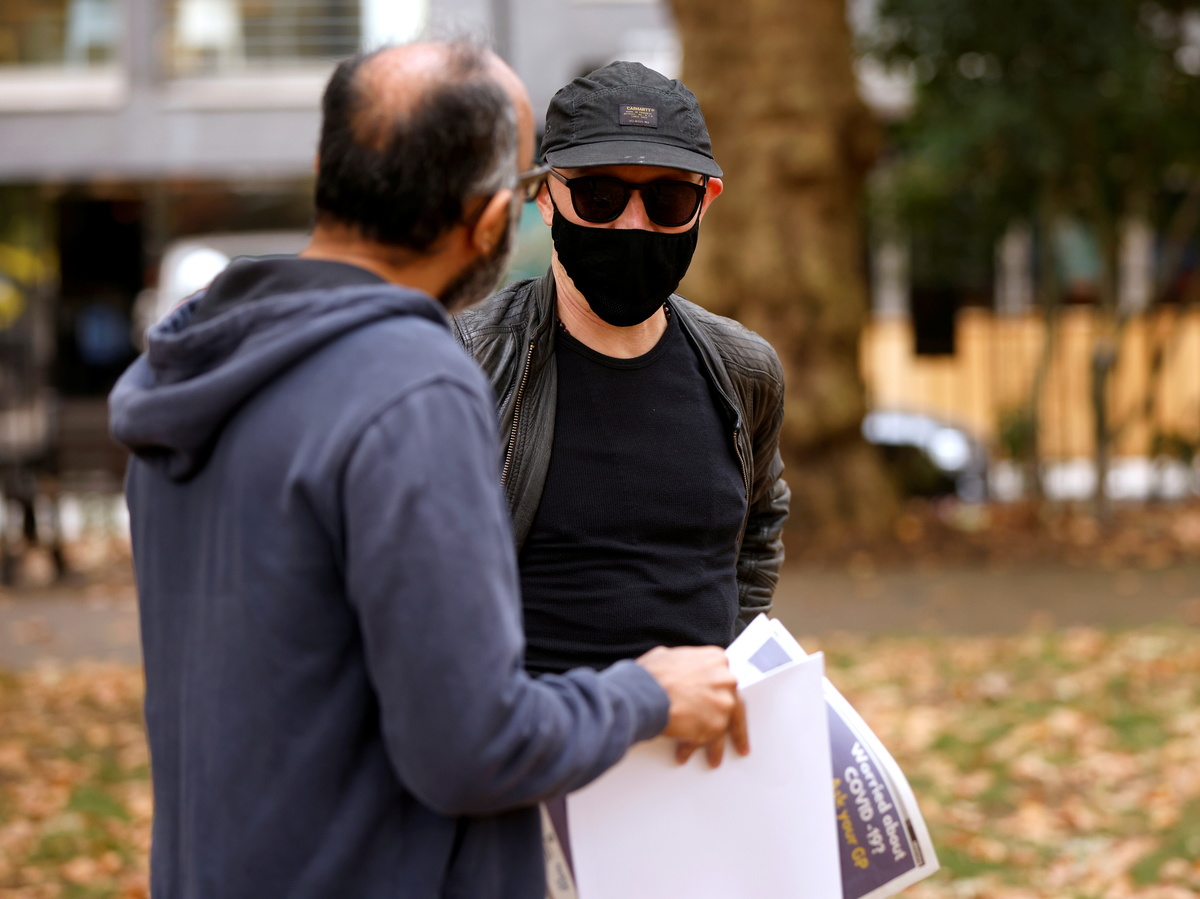 STIK, known internationally for his distinctive stick figures, had arranged for 100,000 prints of a work entitled "Holding Hands" to be distributed to residents of Hackney, the east London neighbourhood where he lives and works.