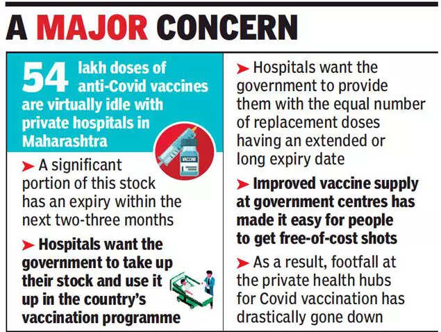 Close to 54 lakh doses of anti-Covid vaccines are almost lying idle with the private hospitals in Maharashtra. A significant portion of this stock has an expiry within the next two-three months.