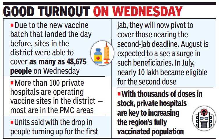 PUNE: The private hospitals offering the Covid vaccines in the district are shifting their focus to second-dose beneficiaries.