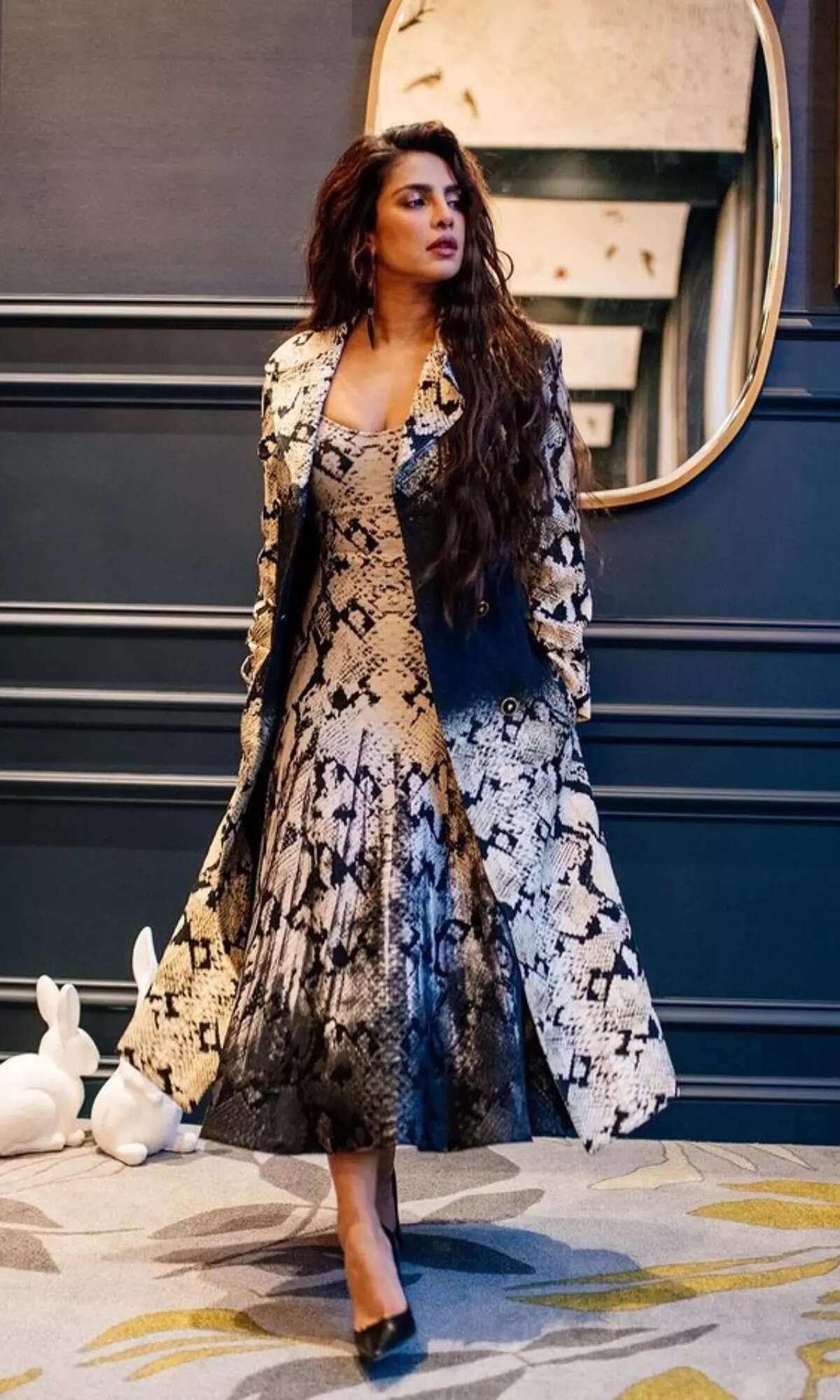 Priyanka raised her style stakes in this printed snakeskin dress with a matching blazer.