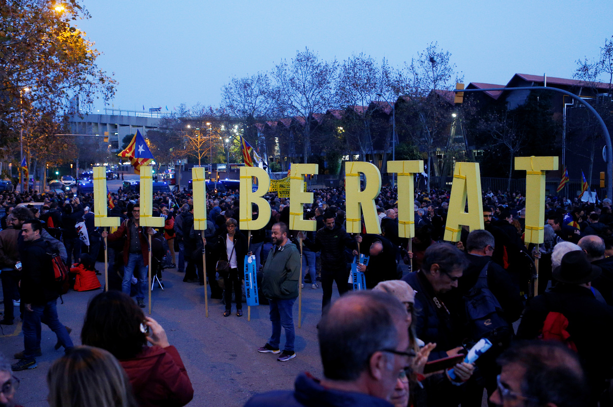 BARCELONA (Reuters) - Chanting "Independence" and "Free political prisoners", several thousand Catalan protesters gathered near Barcelona's Camp Nou stadium on Wednesday hours before the home side was to face rivals Real Madrid in Spain's most high-profile match.
