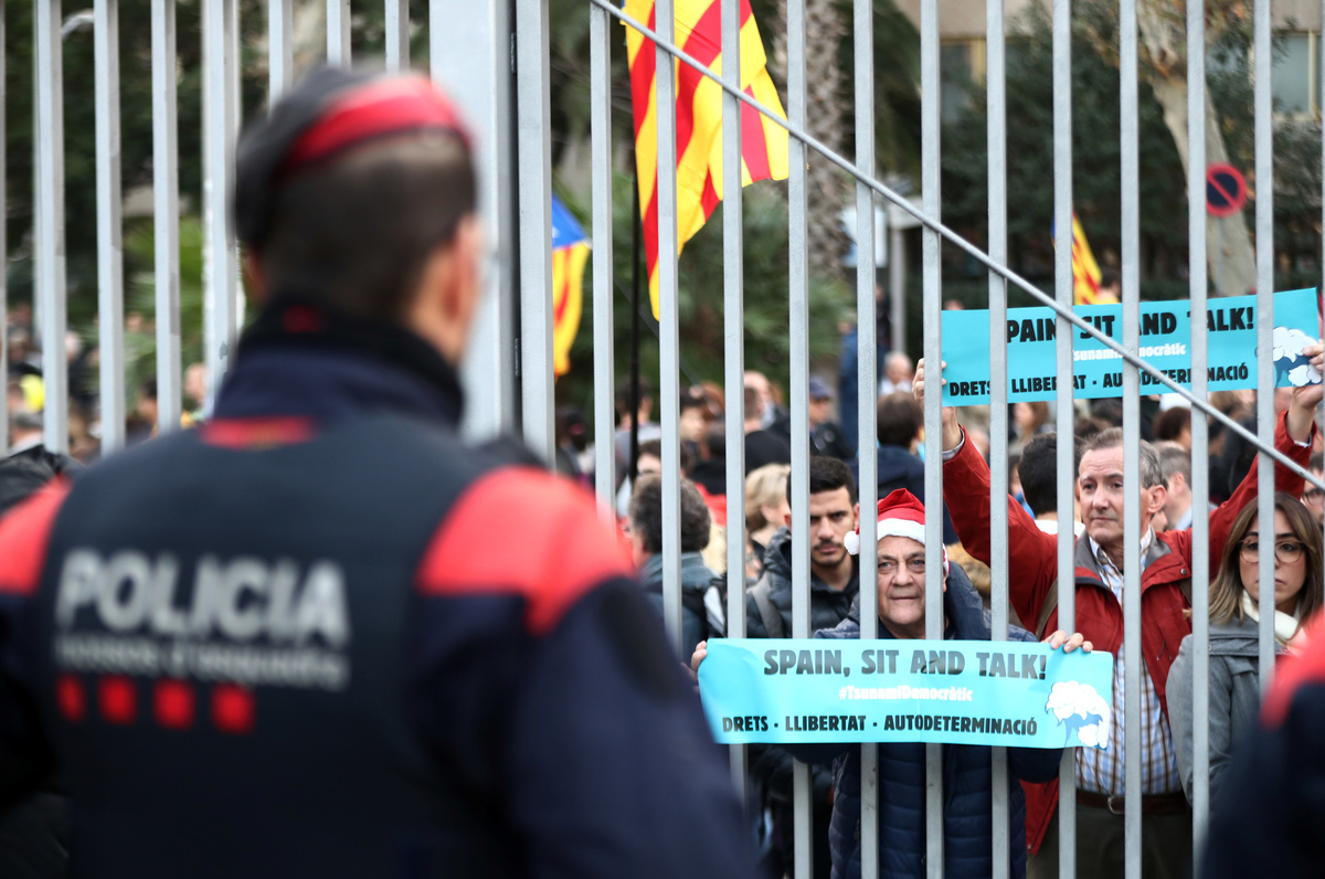 Wednesday's protest was called by secretive Catalan protest group Democratic Tsunami, which says it favours peaceful civic disobedience. The group's main goals are to get Spain to negotiate on Catalonia's right to self-determination and to achieve freedom for the jailed separatists.