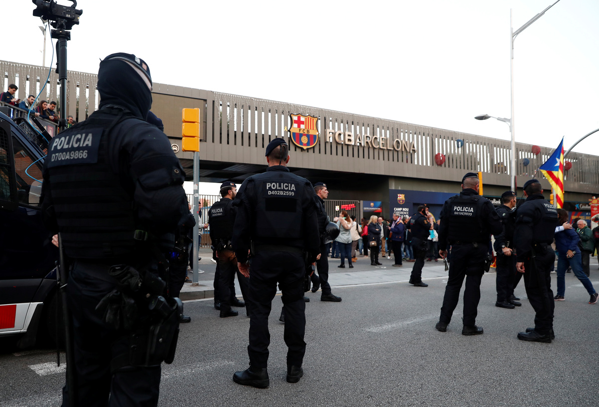 Minutes before the match began Catalan police broke up fighting that flared between some Barcelona fans and pro-independence protestors, detaining one person for throwing projectiles at them.