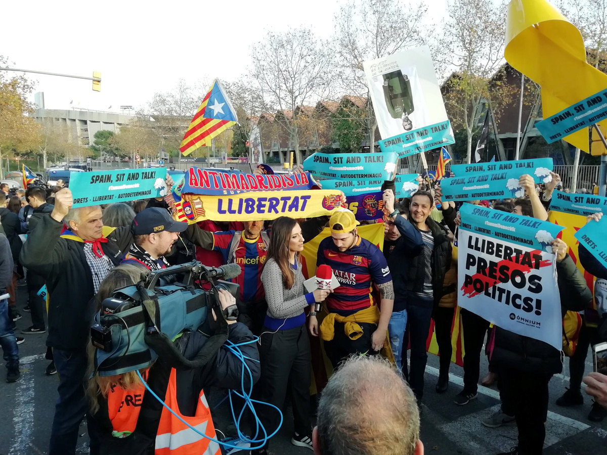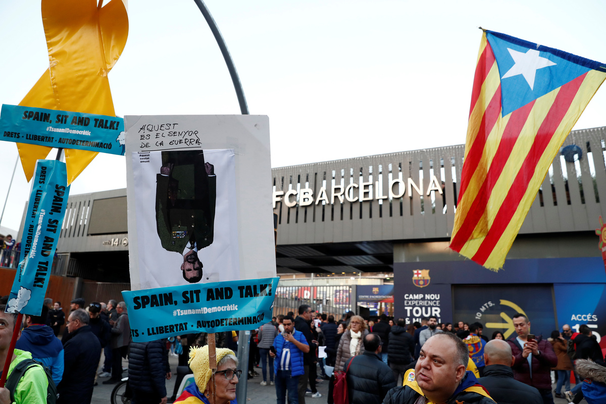 Protesting in front of a hotel near the stadium where both teams were resting, pro-independence voter Marta Canaves, 53, said that the venue was a "great place to make visible to the rest of the world" the situation in Catalonia.