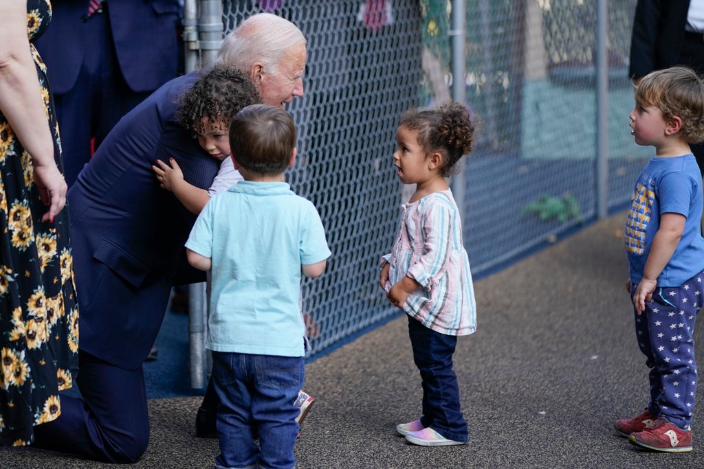 Mr Biden was at the Capitol Child Development Centre in Hartford, Connecticut to deliver remarks highlighting the proposed childcare subsidies in his Build Back Better infrastructure package.