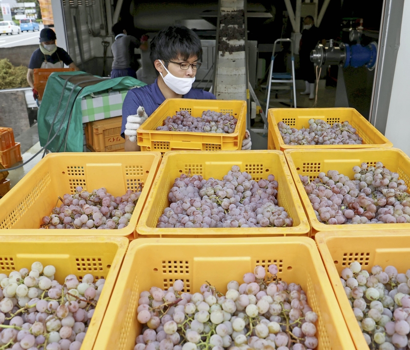 KOSHU, Yamanashi -- Preparations for producing this year's white wine have begun in Koshu, Yamanashi Prefecture, which is known as one of Japan's leading wine production areas.