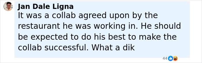 “When she said that she felt disrespected, I said, ‘I feel disrespected that you don’t even know who the chef is. [As a collaborator], you’re supposed to be representing me.’”