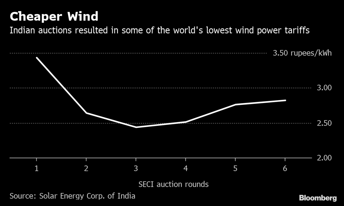 India has drawn global attention since it started awarding wind power projects at record-low tariffs, spurring optimism that renewable energy could supplant the nation’s abundant coal resources in electricity generation.