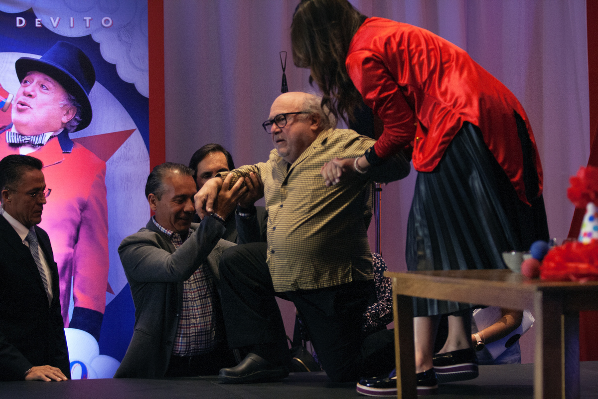 MEXICO CITY (Reuters) - Actor Danny DeVito gamely carried on with a promotional stop in Mexico for Disney's new "Dumbo" movie on Tuesday after falling as he walked to a small stage, photographers capturing the moment with a frenzy of clicks.