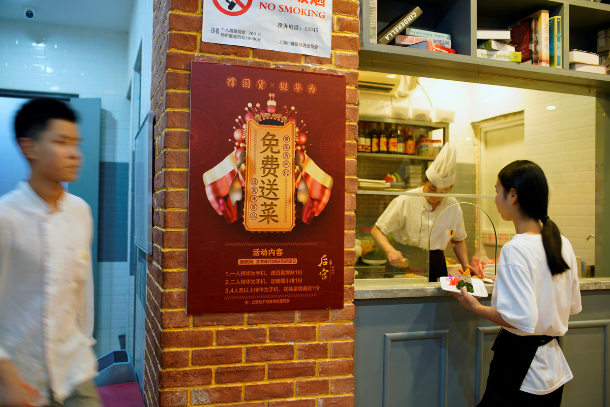 Fang Xia, a 38-year-old restaurant owner in Shanghai, said she was motivated by recent coverage of Huawei's dispute with the United States to offer her customers a special deal.