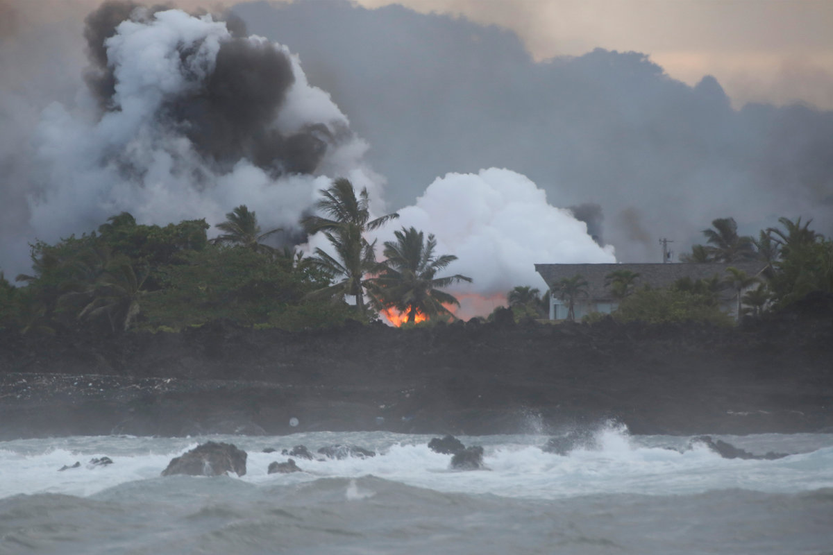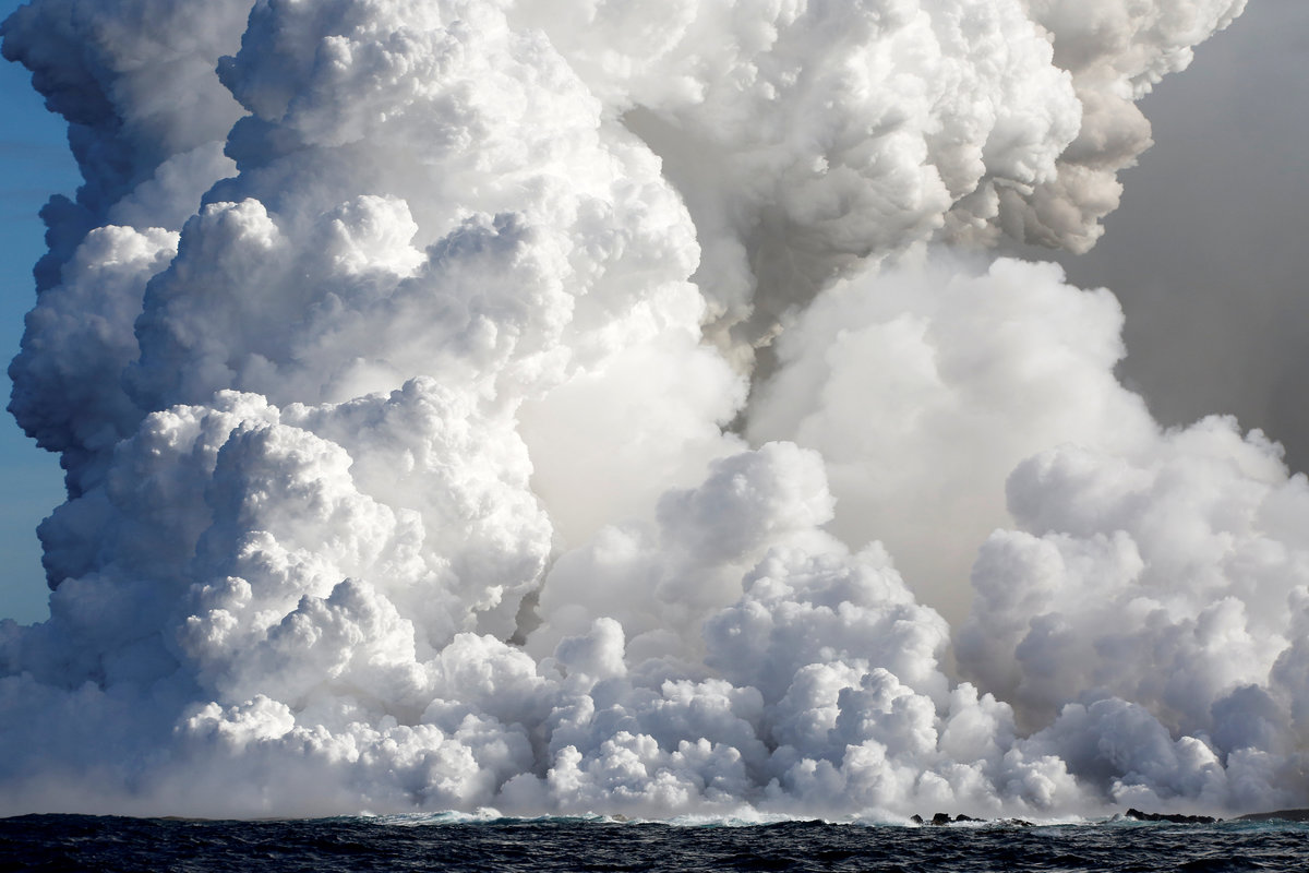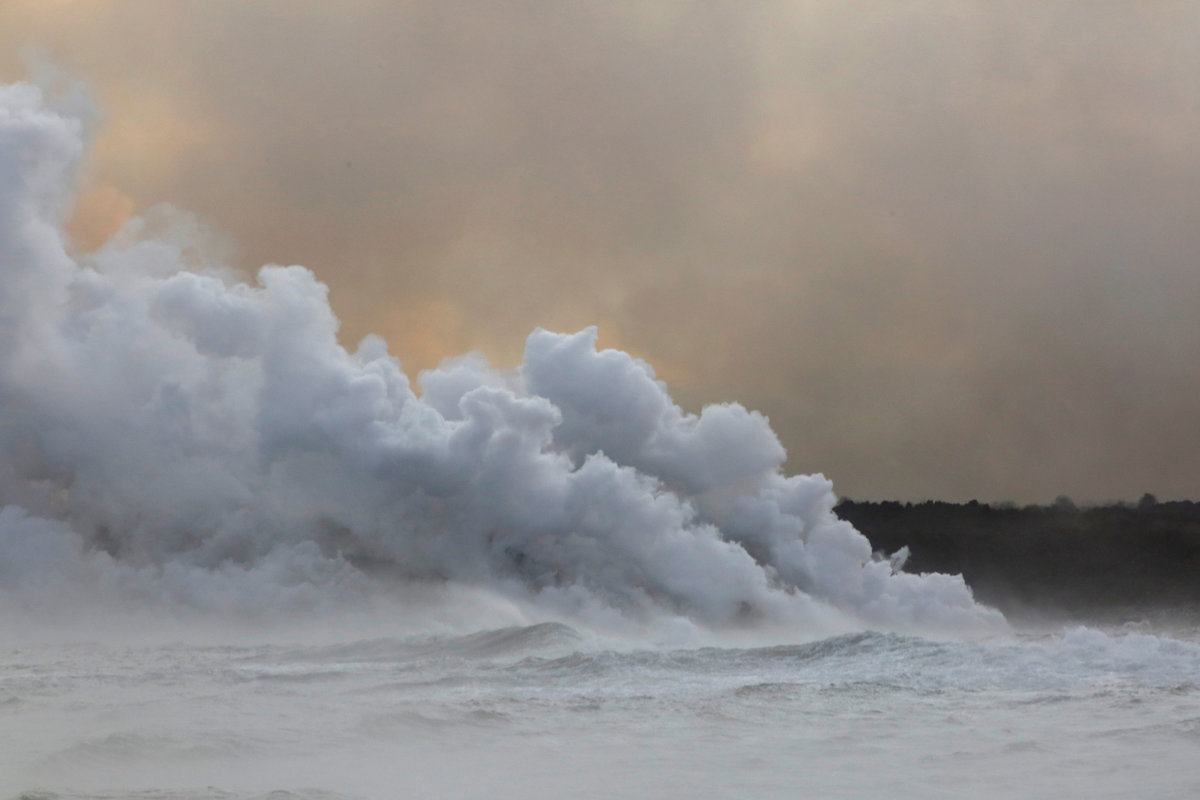 Seaside residents and boaters also have been warned to avoid noxious clouds of laze -- a term combining the words "lava" and "haze" -- formed when lava reacts with seawater to form a mix of acid fumes, steam and glass-like specks.