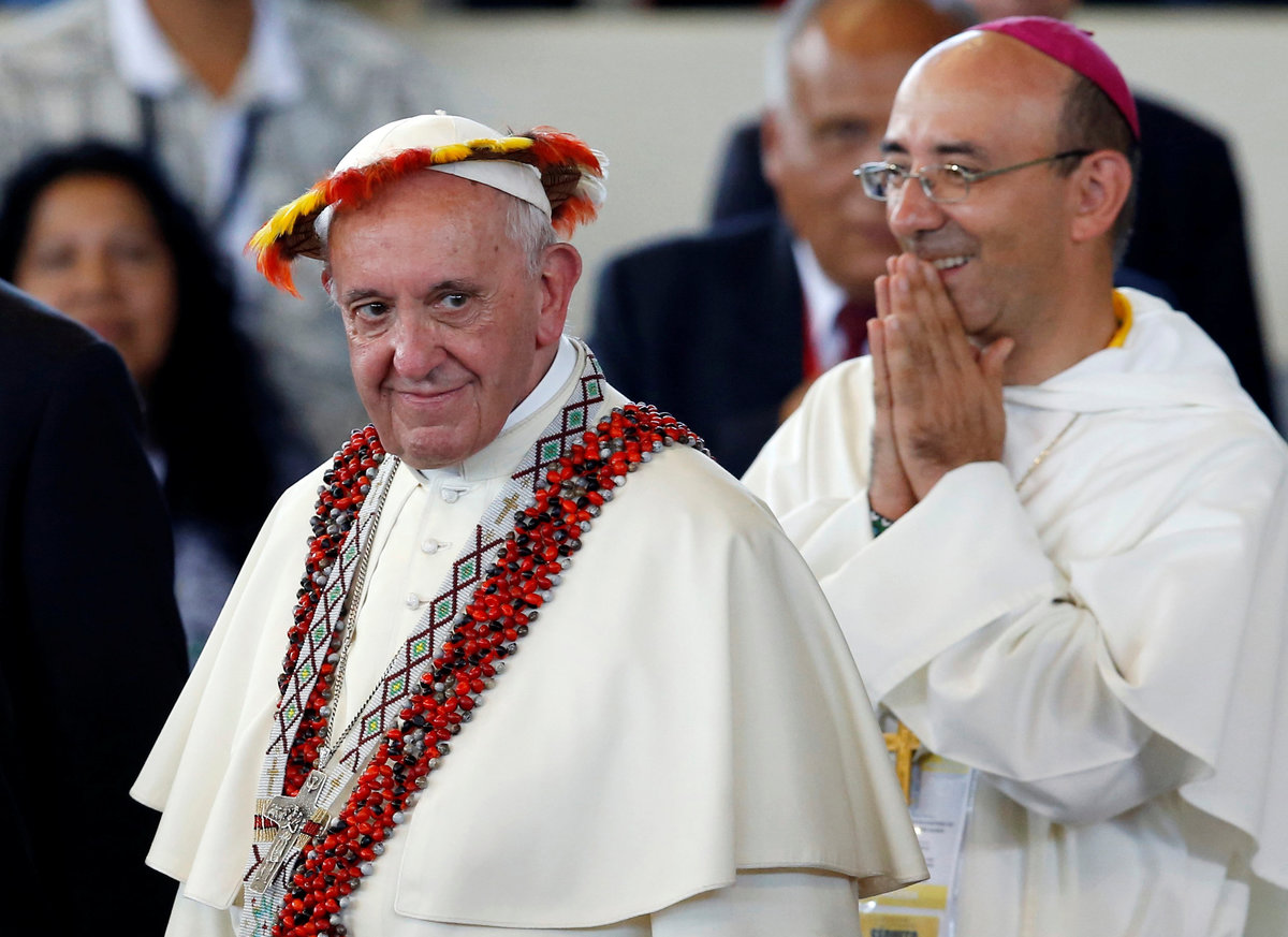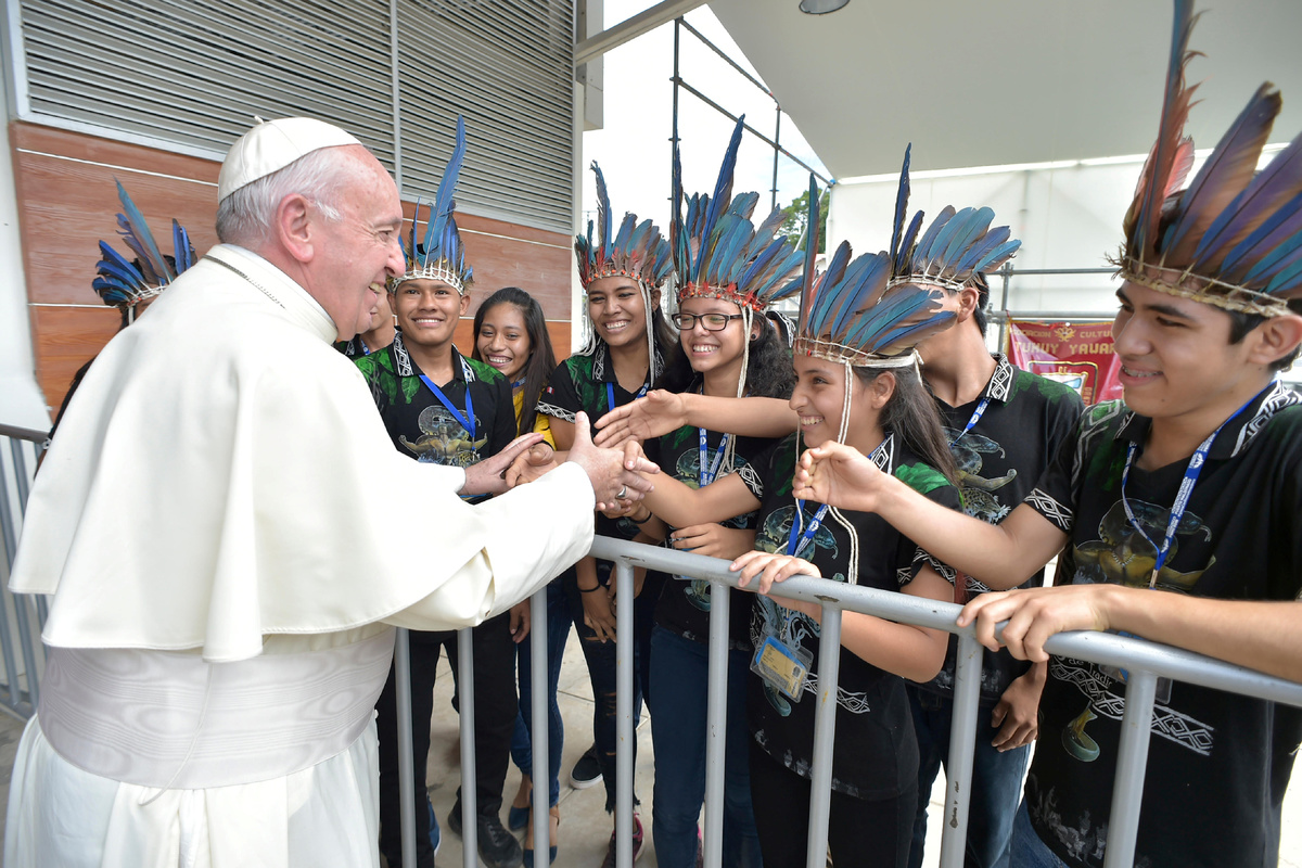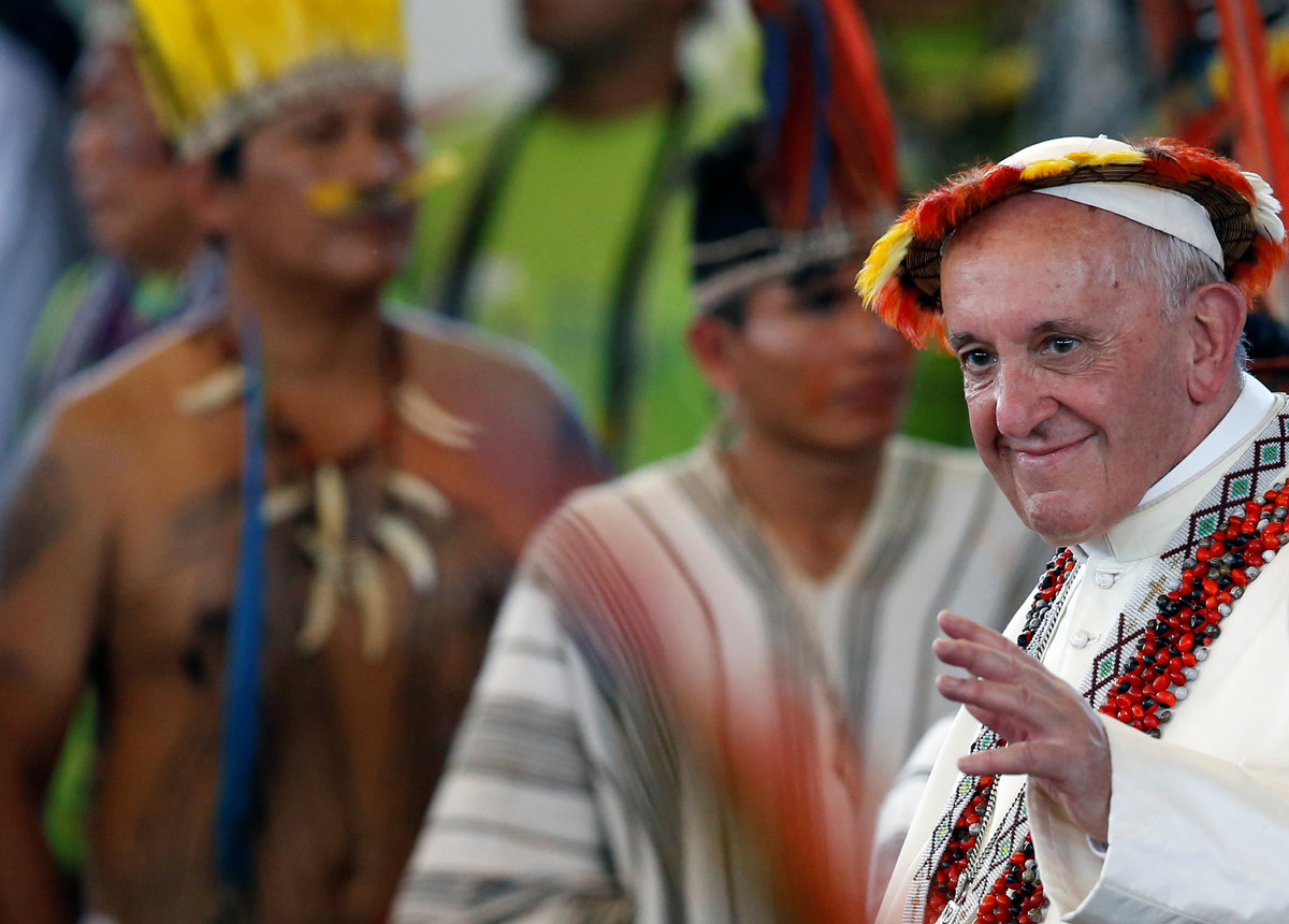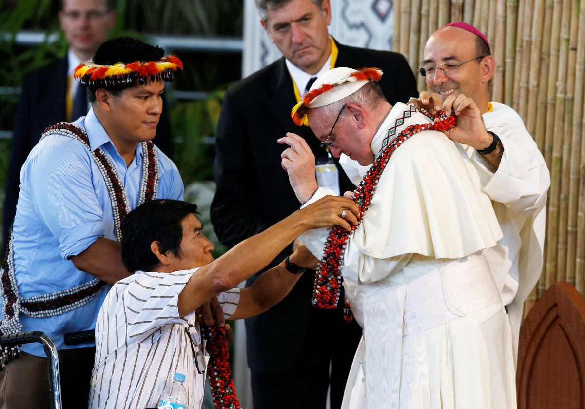 "The native Amazonian peoples have probably never been so threatened on their own lands as they are at present," the pope told a crowd of indigenous people from more than 20 groups including the Harakbut, Esse-ejas, Shipibos, Ashaninkas and Juni Kuin.