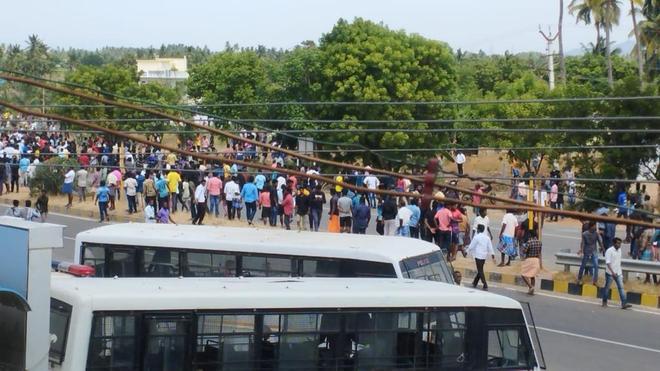 Earlier on Sunday, a large number of locals and outsiders blocked traffic on the Chinna Salem-Kallakurichi Road and attempted to proceed towards the school. When the police tried to stop them, the crowd broke the barricades and started pelting the police with stones.