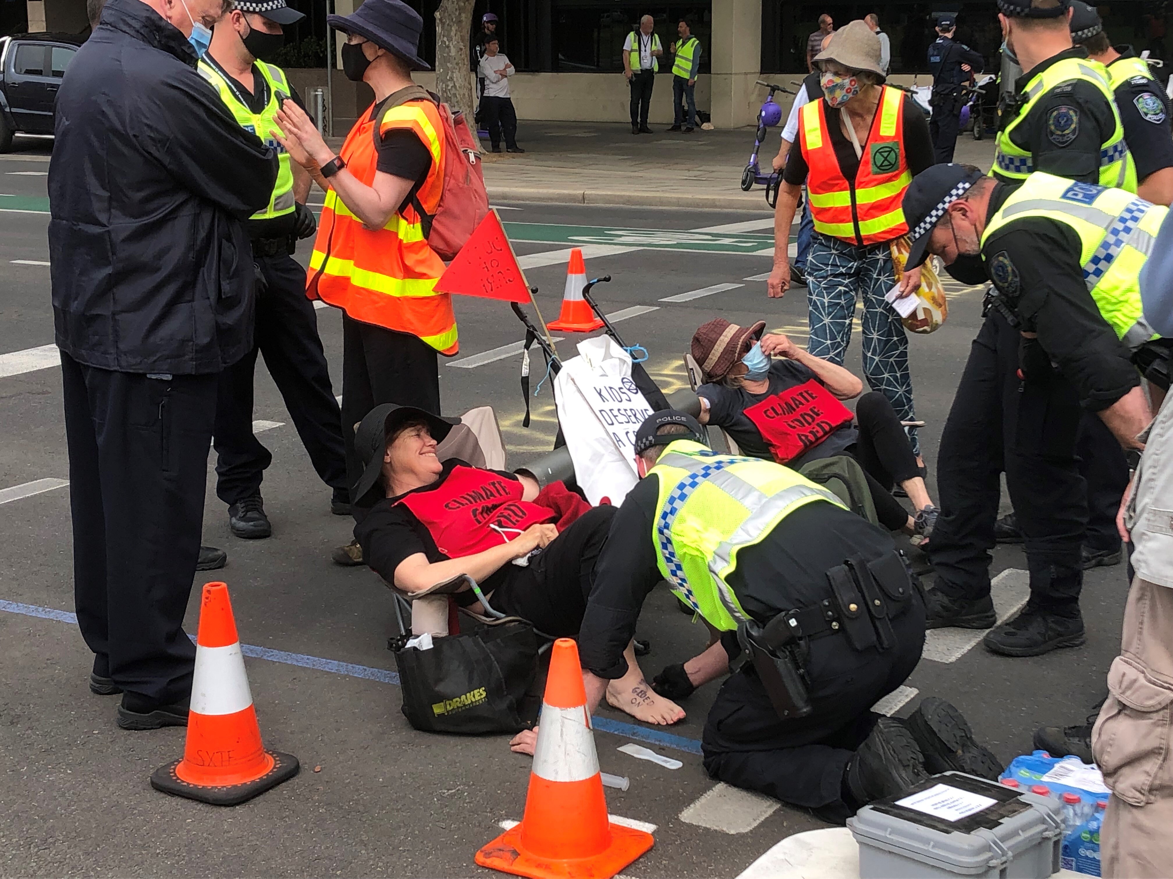 "It wasn't done with the extremist elements that we've seen Extinction Rebellion exercise — no-one was hanging themselves upside down from Morphett Street bridge in a way that resulted in people being unable to get to and from the Royal Adelaide Hospital," he said.