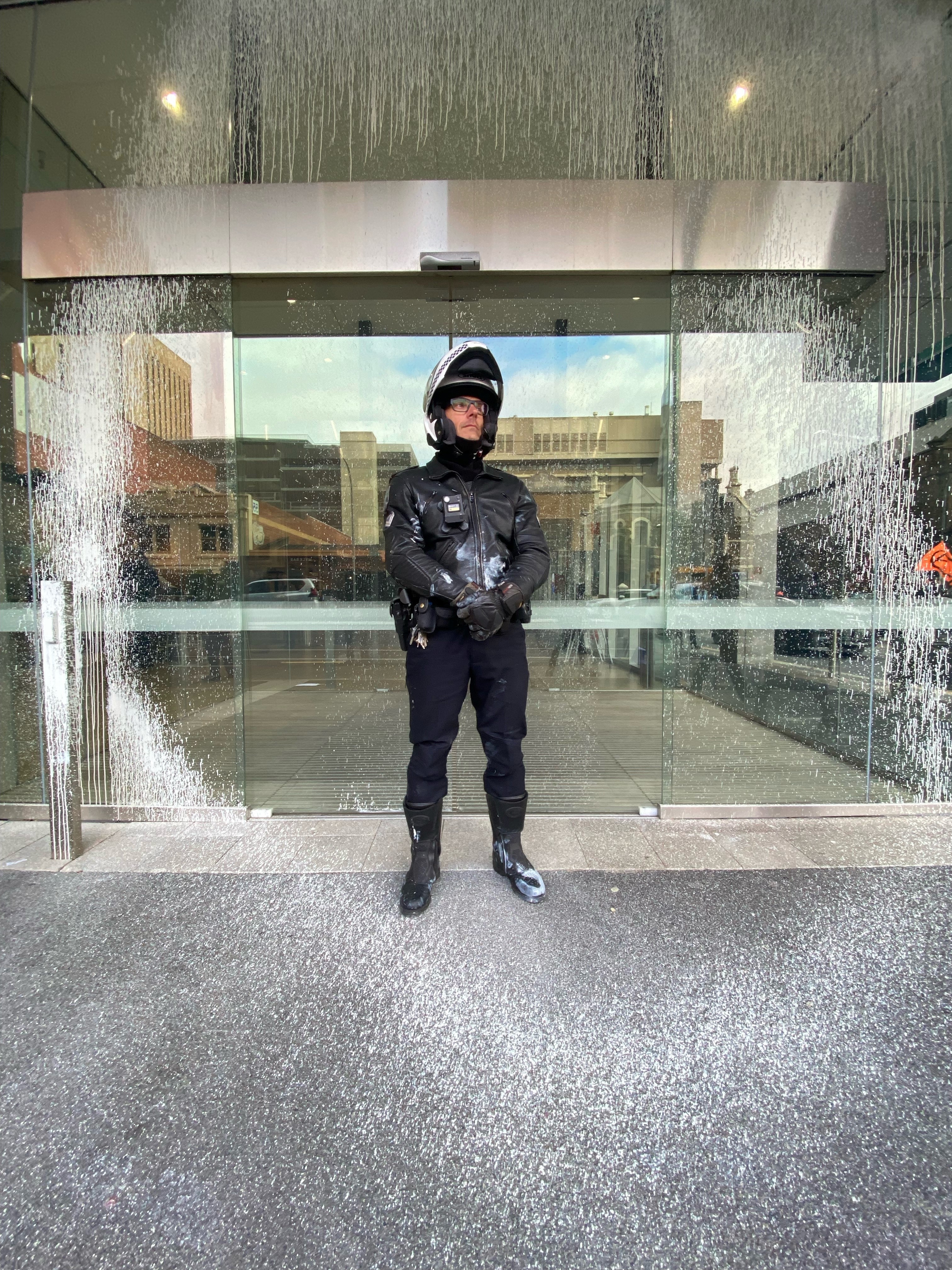 On Thursday, four climate change protesters were arrested and charged with offences including property damage, after allegedly throwing paint at the Santos building.