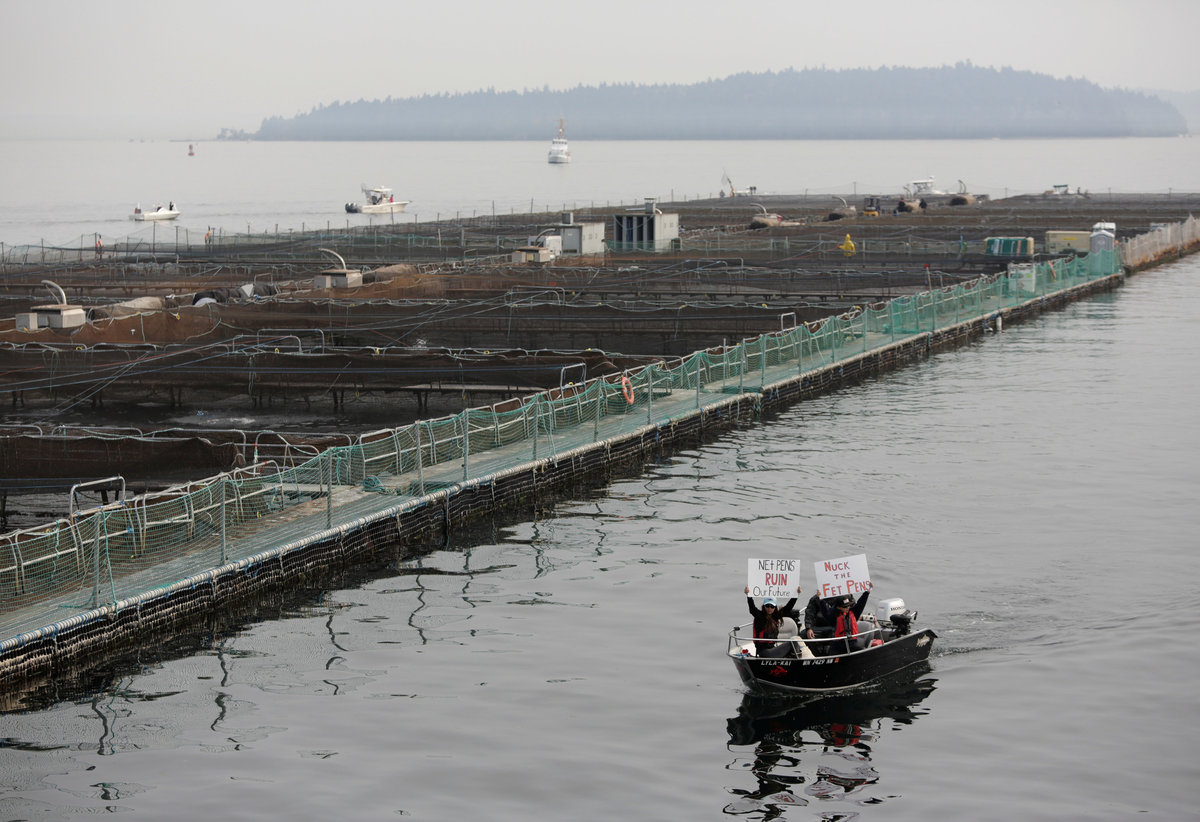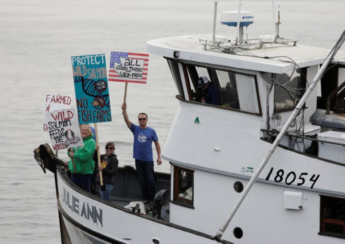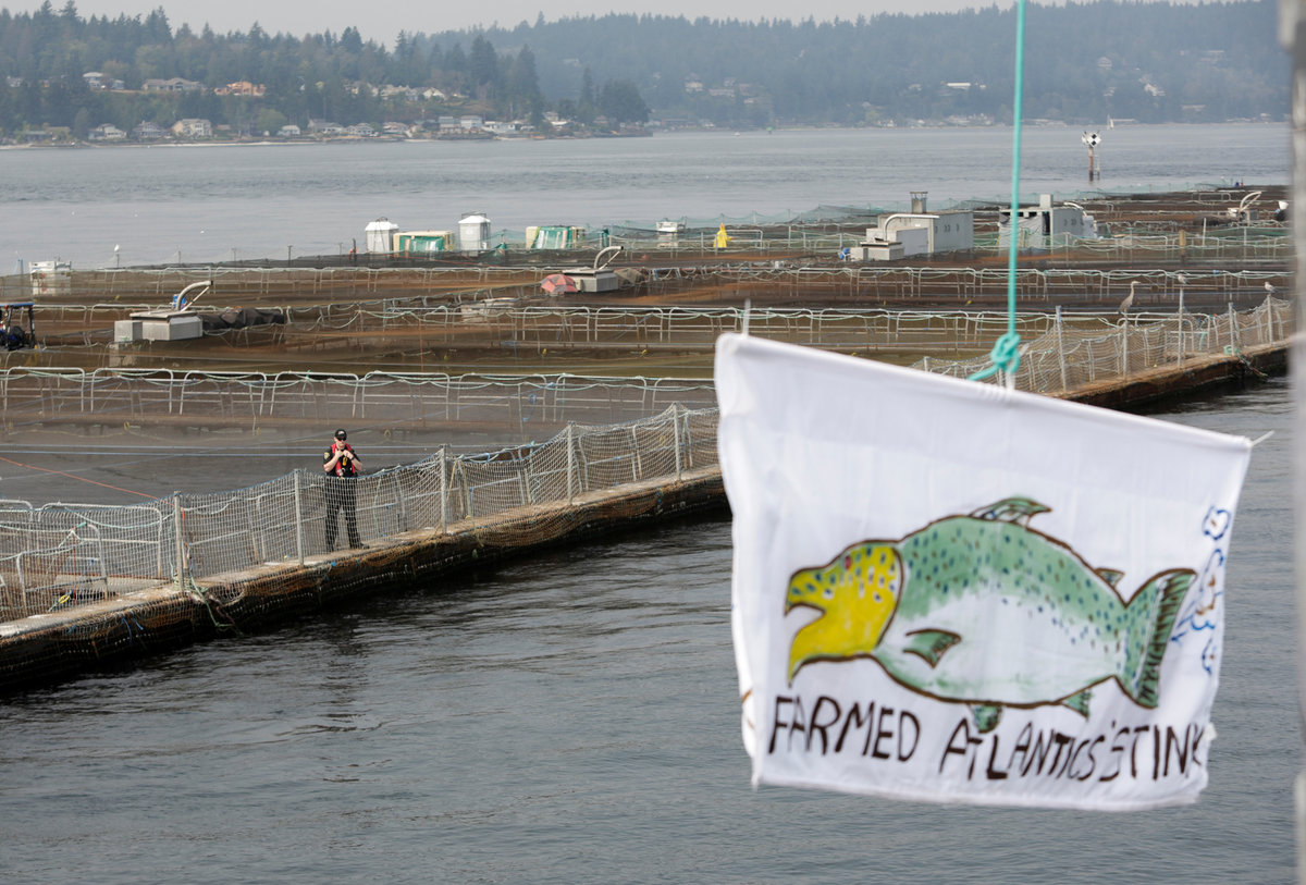 "Our wild salmon are in trouble and we can't afford to have an industry in our state that only adds to their problems," Kurt Beardslee, head of activist group Wild Fish Conservancy and organizer of the protest, said in a telephone interview.