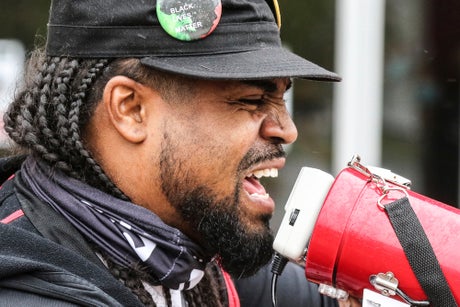 In the video, an officer attempting to handcuff Garrett tells him several times to “stop flexing.” The officer then yells “stop” once more before multiple officers force Garrett to the ground. The initial officer then punches Garrett’s head at least three times while onlookers scream at officers to stop. It appeared Garrett’s glasses were broken in the struggle.