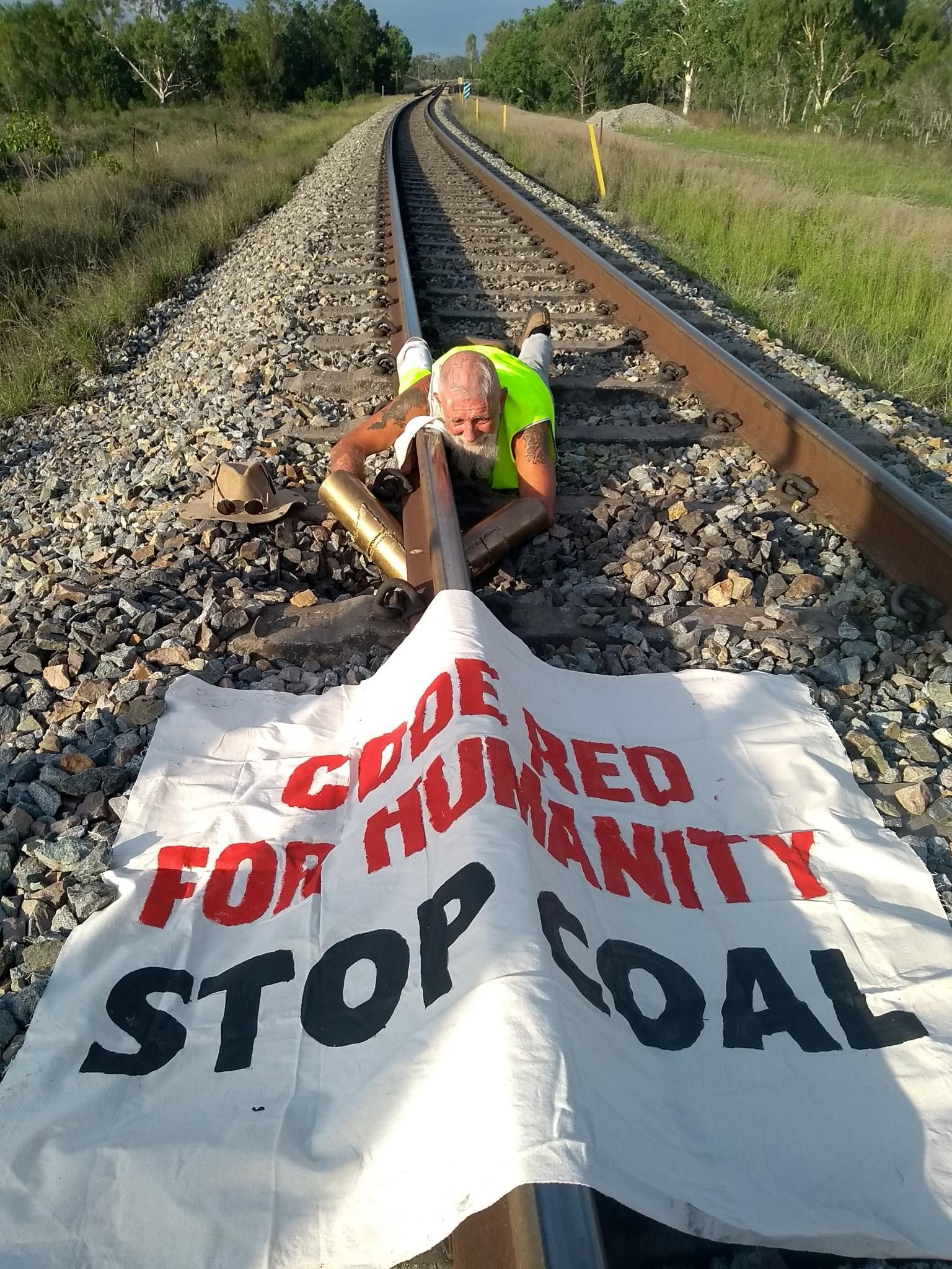 Police have confirmed that two people are in custody and a 75 year-old man has been charged after environmental activists targeted trains carrying coal from the Carmichael Mine in central Queensland.