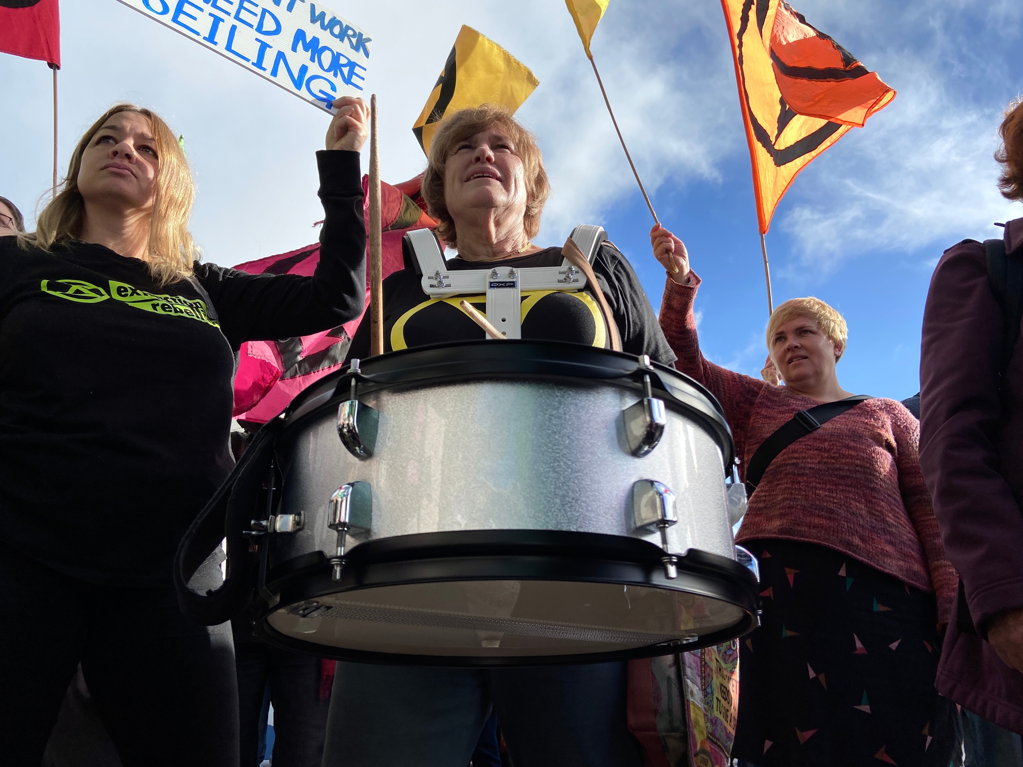 Today's rally point represented a departure from the traditional protest site on parliament's front steps, and was deliberately in earshot of MPs inside, with protesters chanting "kill the bill" to the sound of drums and sirens.