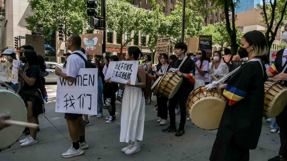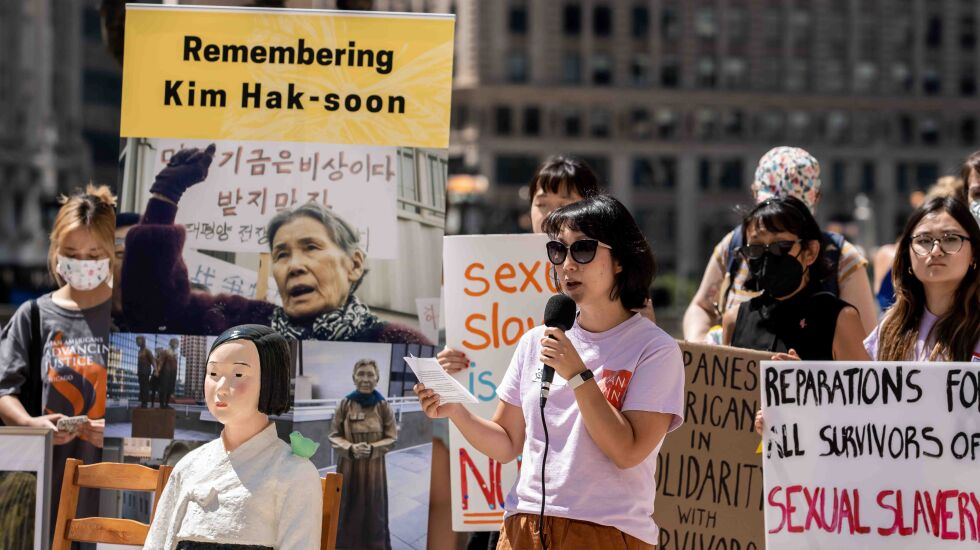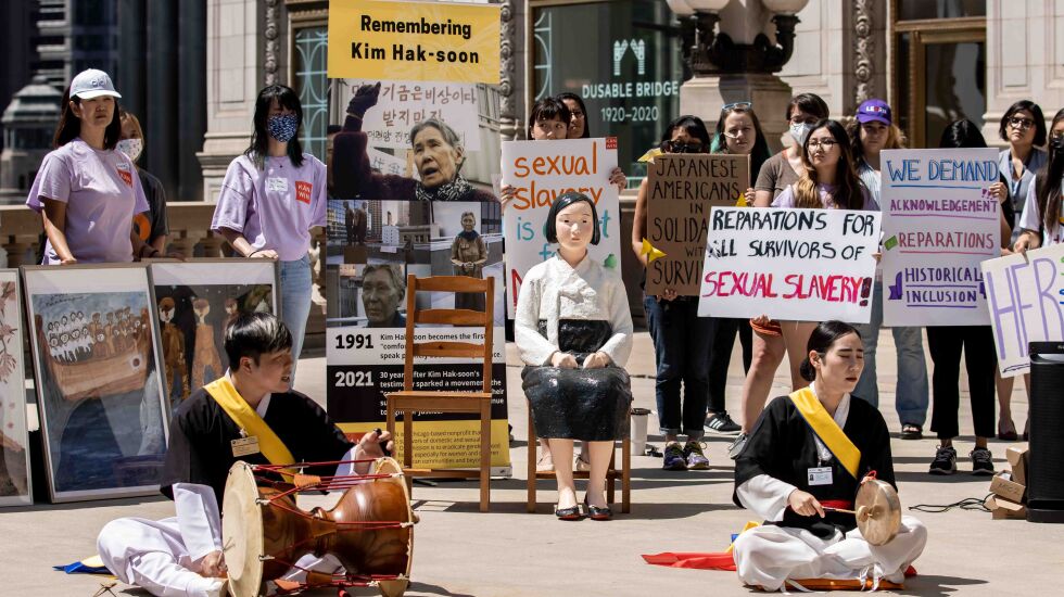 Dozens of protesters rallied Wednesday on the Near North Side to raise awareness about the injustices suffered by “comfort women” at the hands of the Imperial Japanese Army.