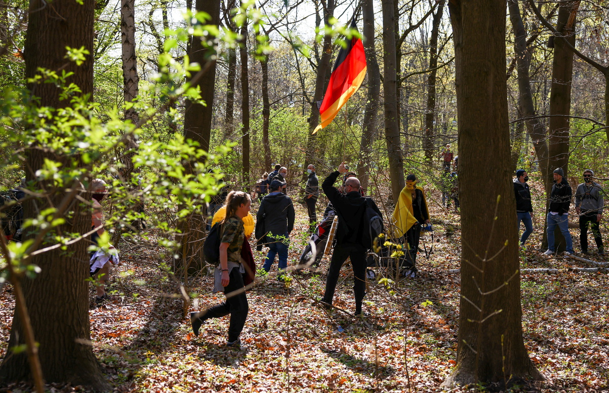 "Peace, freedom, no dictatorship!" some protestors chanted, many waving German flags and banners which said the coronavirus lockdown undermines values enshrined in the constitution.