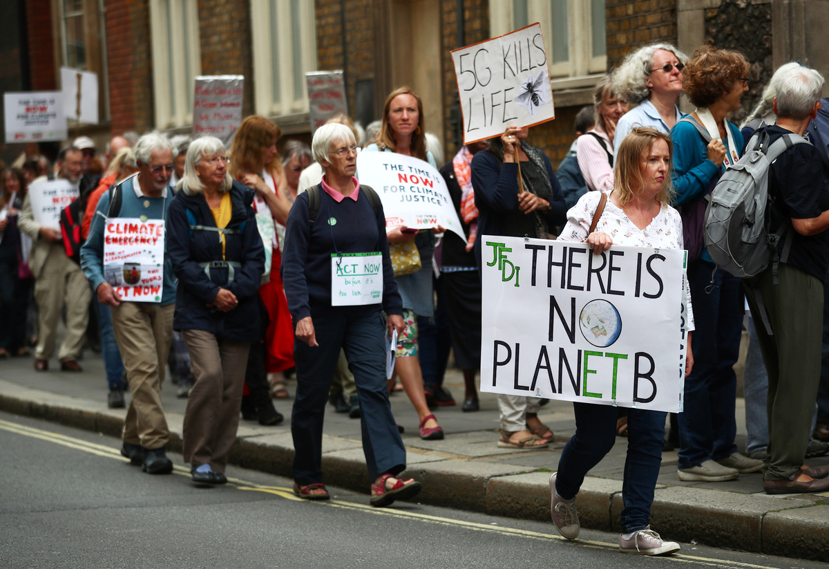 The protest was the latest sign of an upsurge in public concern over the climate crisis, spurred by reports of extreme weather from around the world and increasingly urgent warnings from scientists over the risk of climate breakdown.