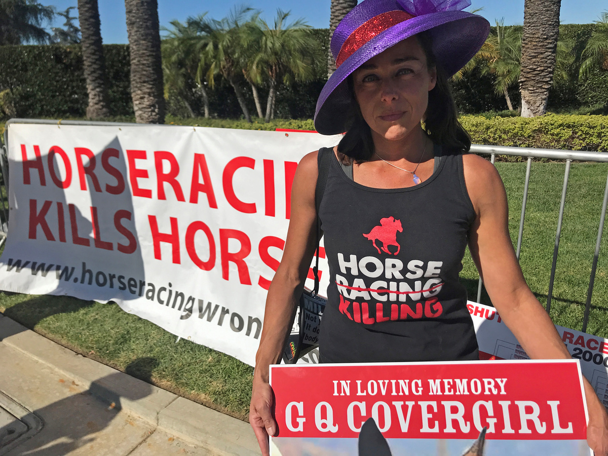 The protest group say roughly 2,000 horses die every year at U.S. race tracks, although the industry says that figure is inflated.