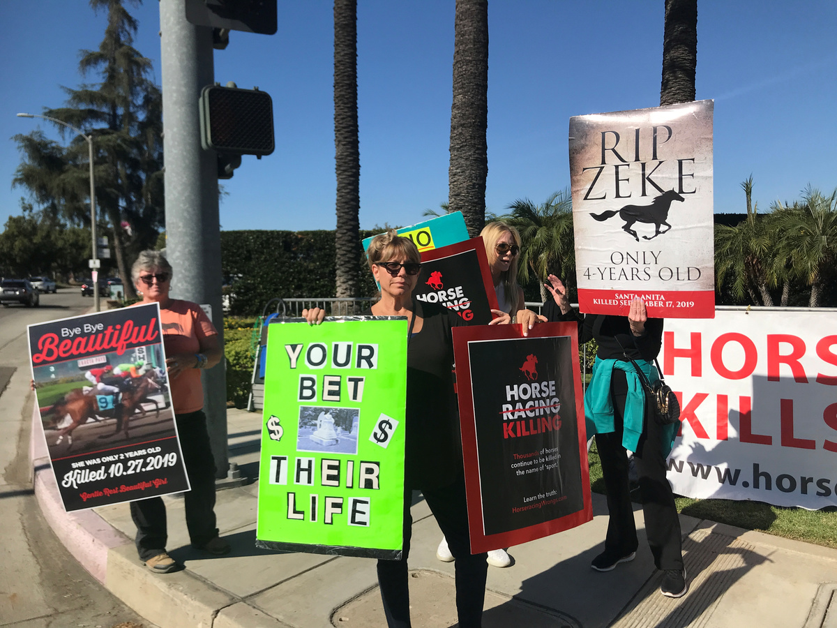 ARCADIA, Calif. (Reuters) - Horse racing is animal cruelty and should be banned, protesters who greeted patrons on the first day of the Breeders' Cup at Santa Anita Park said on Friday.