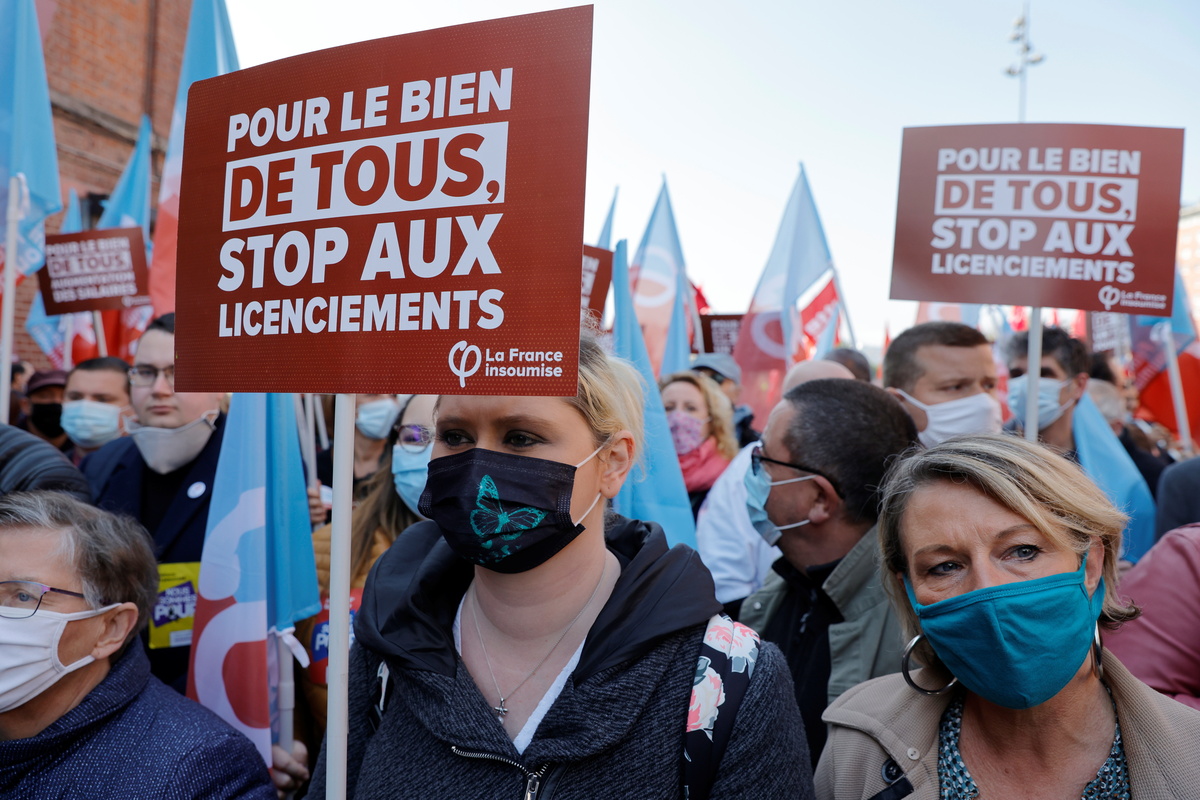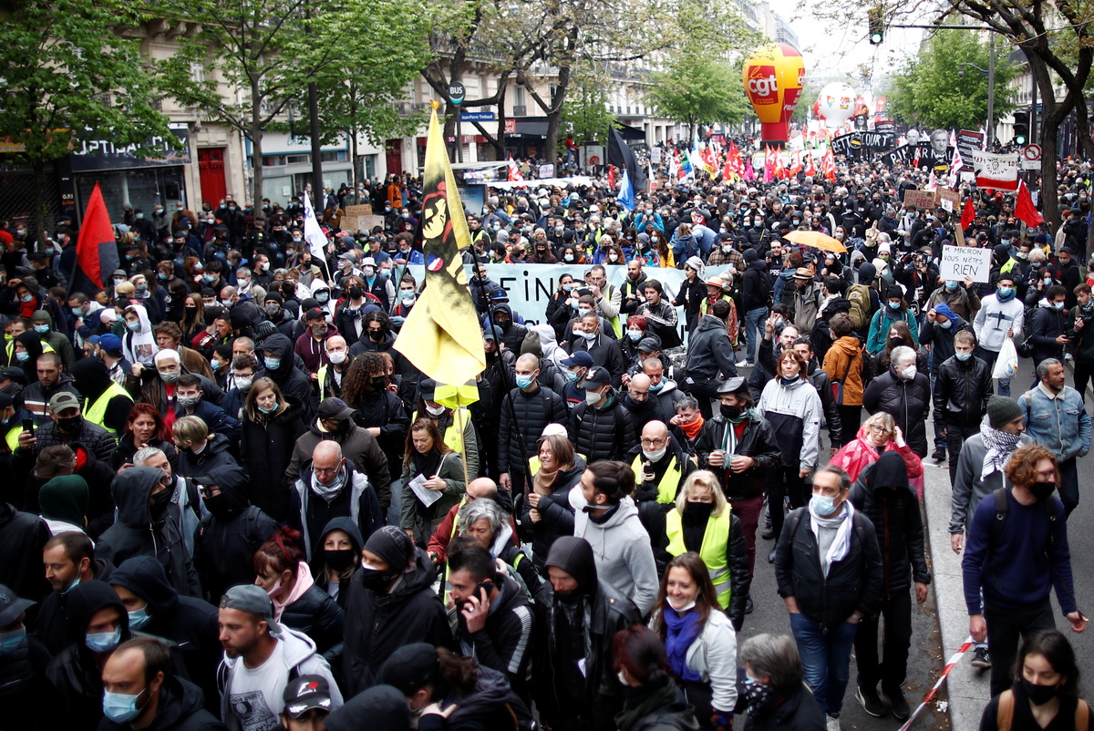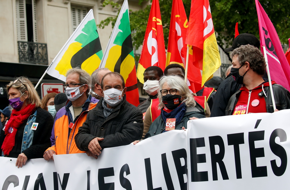 Trade unionists were joined by members of the "Yellow Vest" movement, which triggered a wave of anti-government protests three years ago, and by workers from sectors hit hard by pandemic restrictions such as culture.