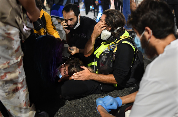 About 40 minutes after the driver struck the woman in the crowd, another altercation occurred between protesters and a motorist in a Prius.