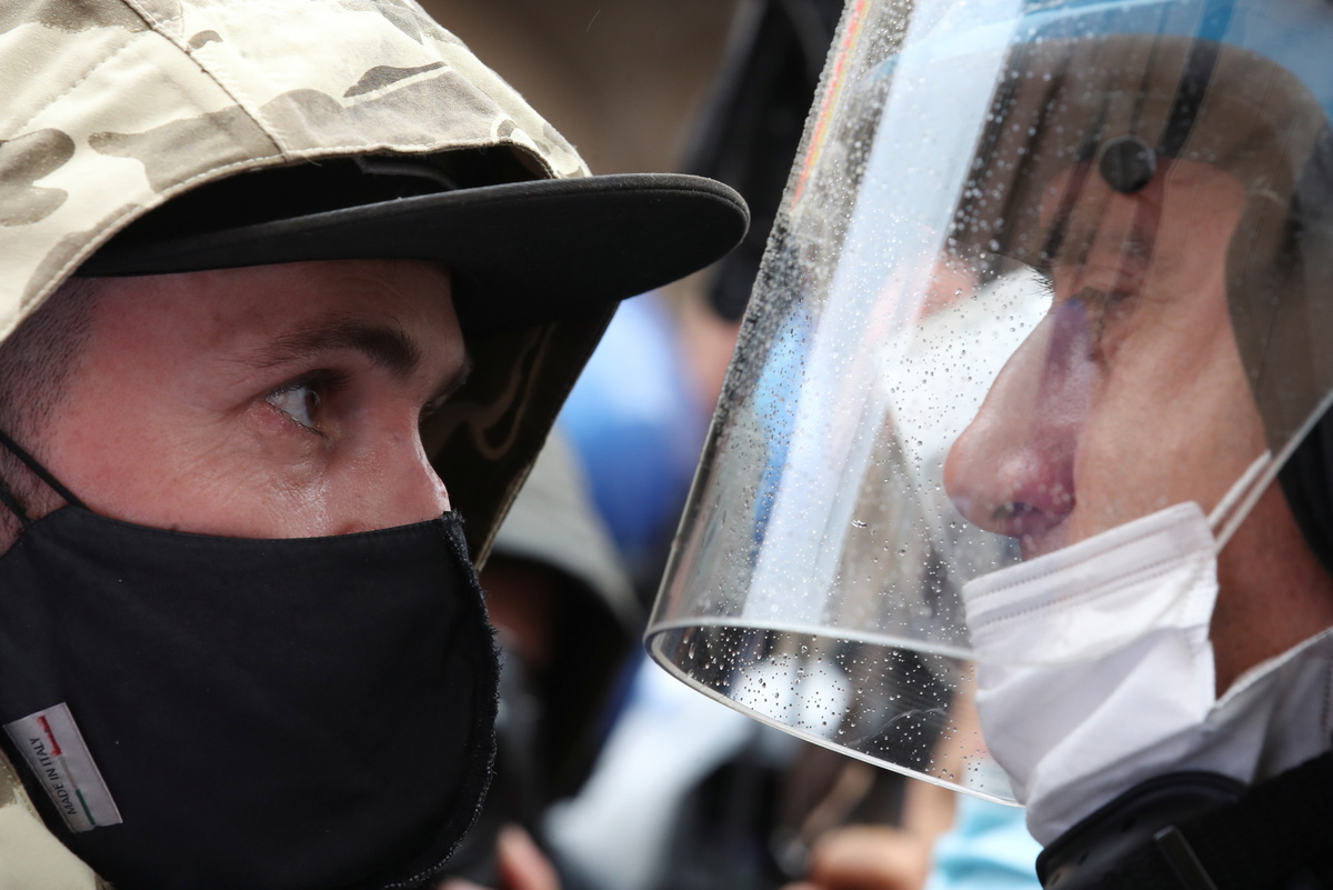 Protesters scuffled with police for a second week running on Monday as frustrated restaurant and small business owners demonstrated against continued coronavirus restrictions that are pounding the economy.