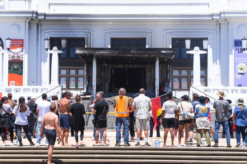 A fire damaged the exteriors and the front doors of Australia’s old parliament building in Canberra on Thursday during a demonstration for aboriginal sovereignty.